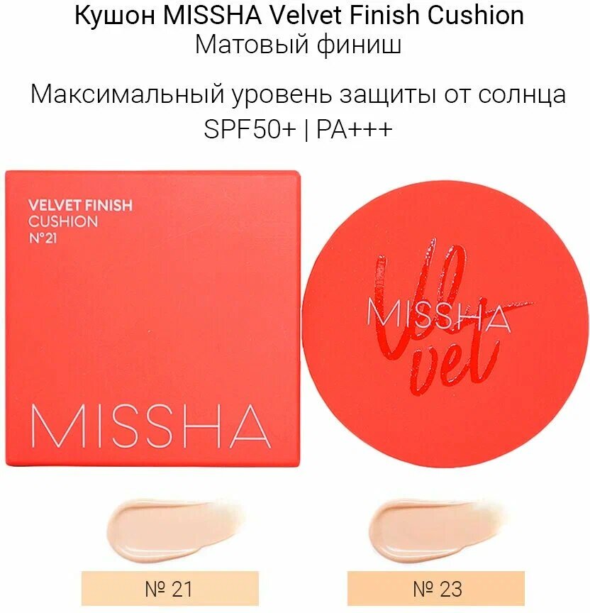 Missha Тональный кушон Velvet Finish Cushion PA+++, SPF 50+, 15 мл/15 г, оттенок: №21, 1 шт.