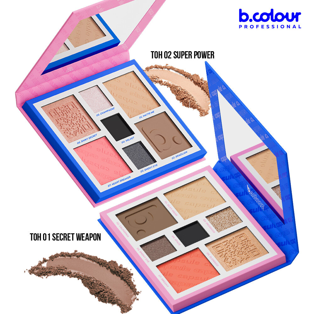 Румяна для лица, хайлайтер, пудра, тени для век, скульптор – палетка для контуринга B.COLOUR PRO CAPSULE 01 Secret weapon