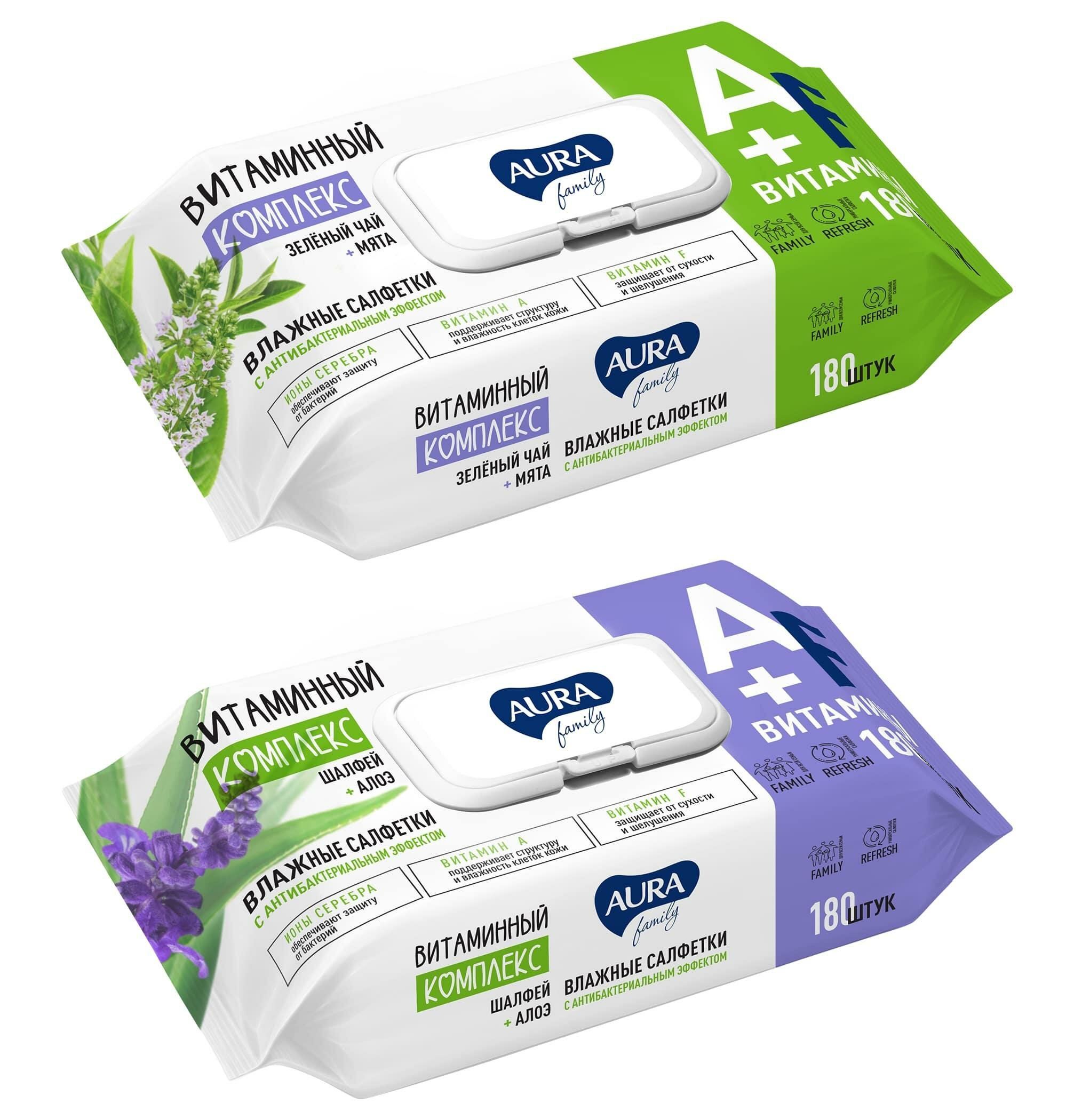 Aura Family Антибактериальные Влажные Салфетки Витаминный Комплекс, 180шт