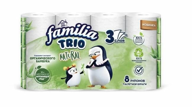Туалетная бумага Familia Trio, 3 слоя, 8 рулонов