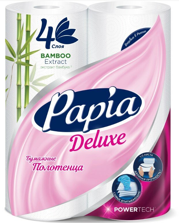 Бумажные полотенца Papia Deluxe, 4 слоя, 2 рулона 1/2 листа