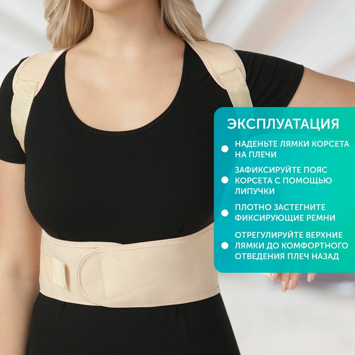 Корректор осанки ортопедический, корсет для спины, бандаж для спины и осанки от сутулости "Здоровая спина", бежевый, размер XL
