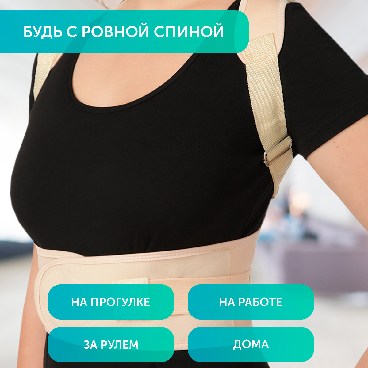 СохранитьКорректор осанки ортопедический, корсет для спины, бандаж для спины и осанки от сутулости "Здоровая спина", бежевый, размер 42-56 интересное: