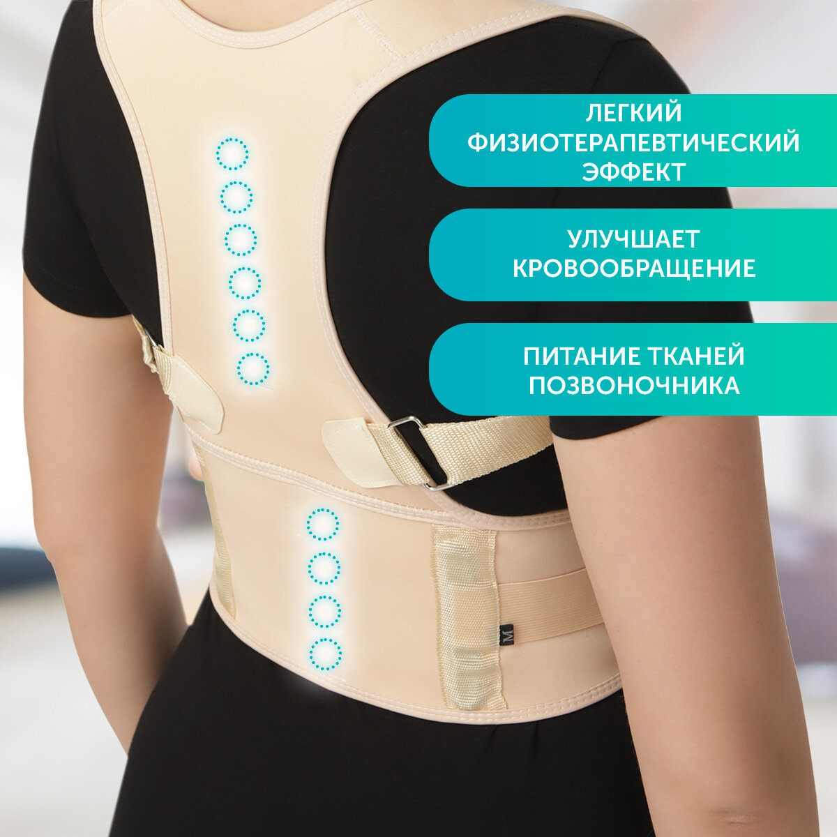 Корректор осанки ортопедический, корсет для спины, бандаж для спины и осанки от сутулости "Здоровая спина", бежевый, размер М