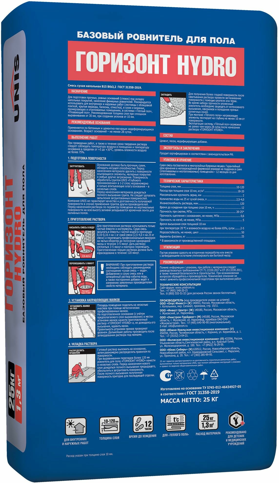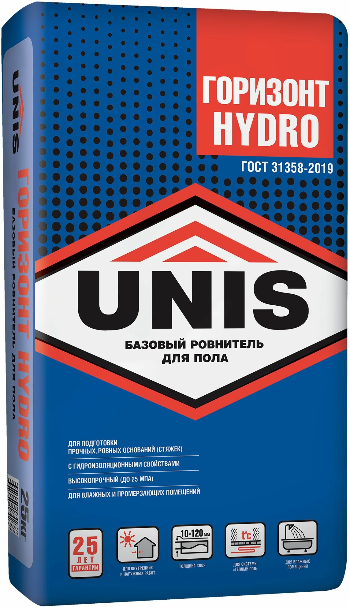 Купить Ровнитель для пола UNIS Горизонт Hydro, 25 кг, сухая смесь, для наружных и внутренних работ