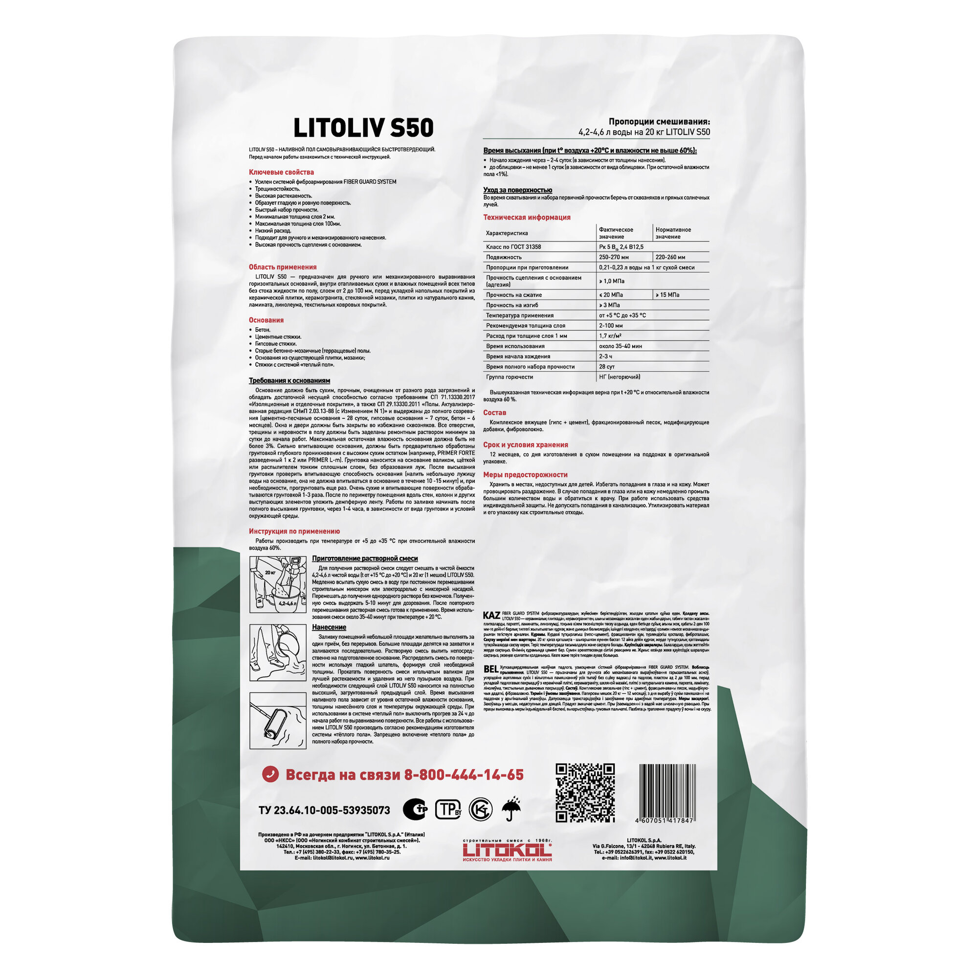 Купить Наливной пол LITOKOL LITOLIV S50, 20 кг, сухая смесь, подходит для теплых полов