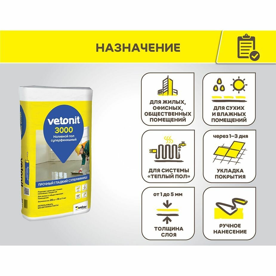 Вебер. ветонит 3000 суперфинишный наливной пол (20кг) / WEBER.VETONIT 3000 суперфинишный наливной пол (20кг) интересное: