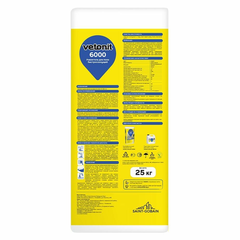 Ниже Вы можете прочитать отзывы на Ветонит 6000 Супербыстротвердеющий ровнитель для пола, 25 кг/Ровнитель первичный Weber.vetonit 6000 быстротвердеющий 25 кг, ознакомится с подробными характеристиками, посмотреть интересные обзоры и фотографии на Ветонит 6000 Супербыстротвердеющий ровнитель для пола, 25 кг/Ровнитель первичный Weber.vetonit 6000 быстротвердеющий 25 кг.