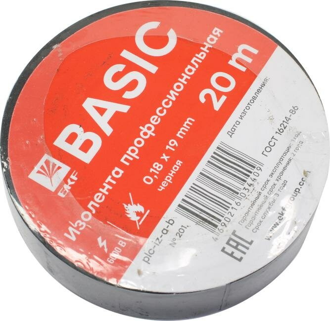 Изолента ПВХ EKF / ЕКФ Basic профессиональная 0.18х19мм, черная 20м, plc-iz-a-b / защитная лента (комплект из 16 шт)