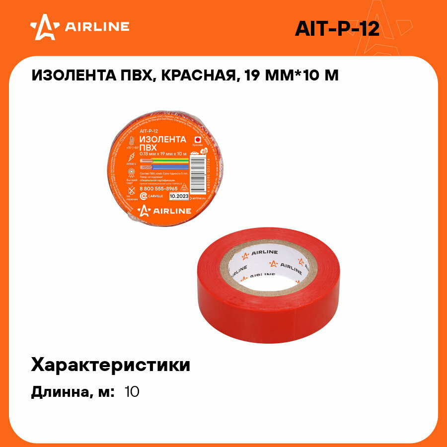 Купить Изолента ПВХ, красная, 19 мм*10 м AIT-P-12 AIRLINE