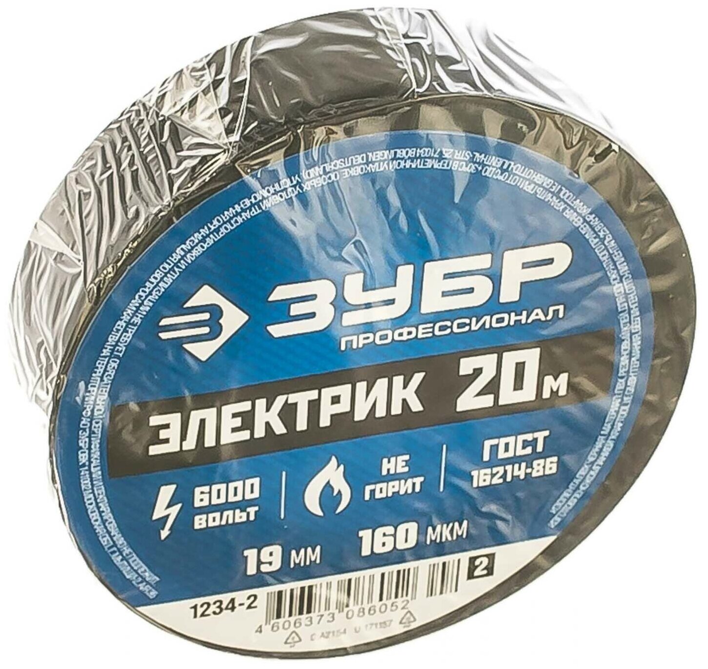 Изолента ПВХ ЗУБР Электрик-20, не поддерживает горение, 20 м (0,16x19 мм), черная (1234-2_z02)