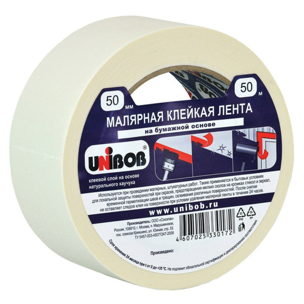Купить Клейкая лента малярная UNIBOB профессиональная 50 мм х 50 м (реальная длина!) 1 шт