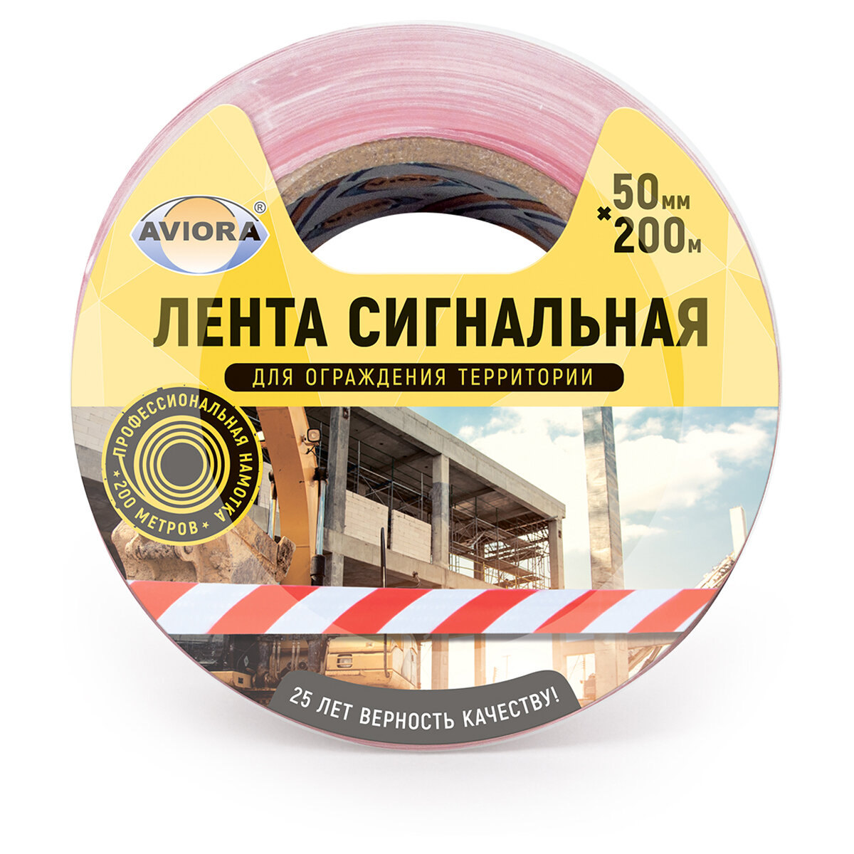 Сигнальная лента AVIORA 50мм*200м,красно-белая