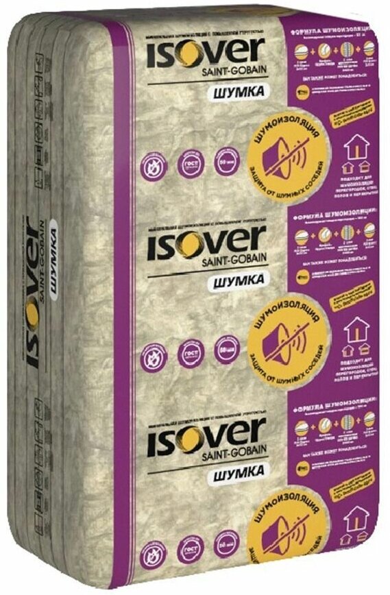 Изовер Шумка звукоизоляция 1000х610х50мм (10шт=6,1м2=0,305м3) / ISOVER Шумка шумоизоляция 1000х610х50мм (6,1 кв. м.=0,305 куб. м.) (упак.10шт.) интересное: