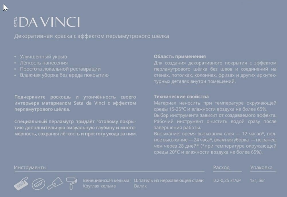 Краска с Эффектом Перламутрового Шёлка Decorazza Seta Da Vinci 1кг SD 11-22 / Декоразза Сета Да Винчи.