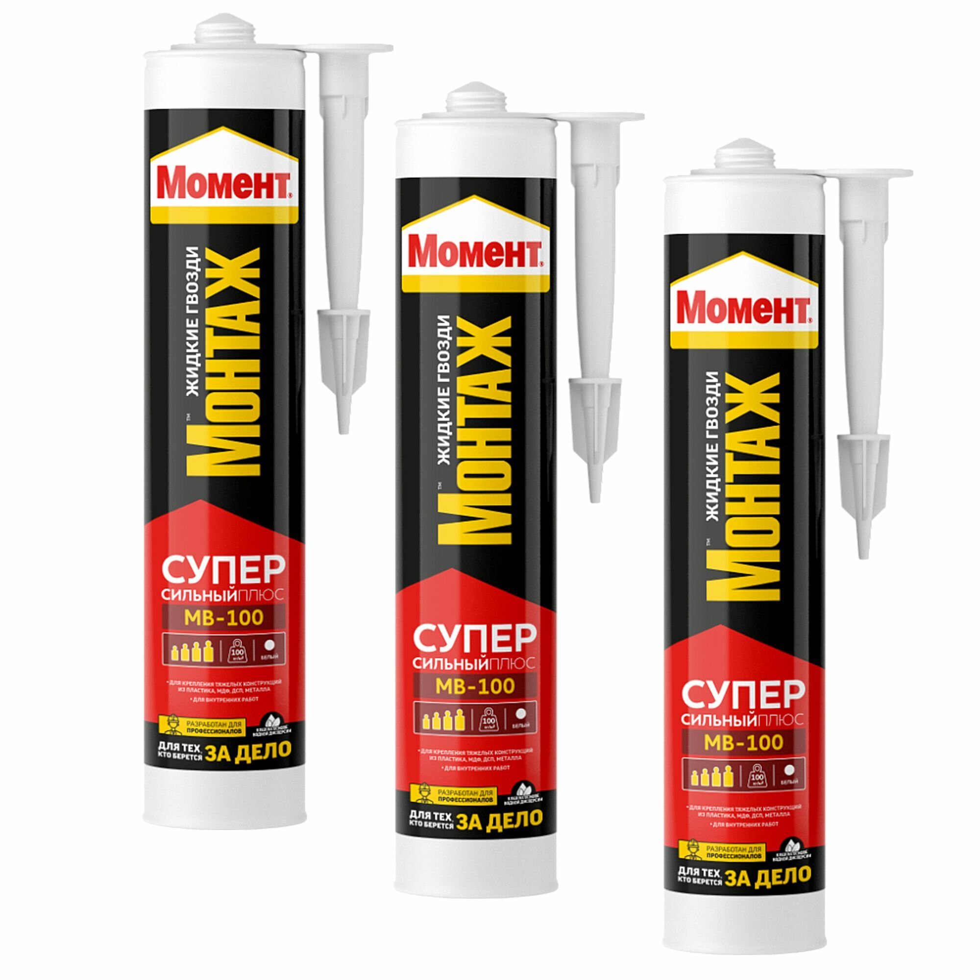 Монтажный клей Момент Монтаж Суперсильный Плюс МВ-100, 3 шт.
