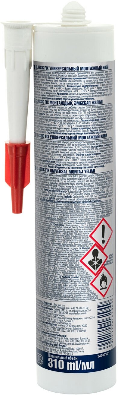 | Дополнительная информация | без толуола и бензола; монтаж тяжелых и легких материалов, элементов декора из изделий из пенополиуретана, древесины и ее производных, металла, стекла, твердых пластиков (ПВХ, АБС, поликарбоната); не подходит для полиэтилена, полипропилена и поролона |