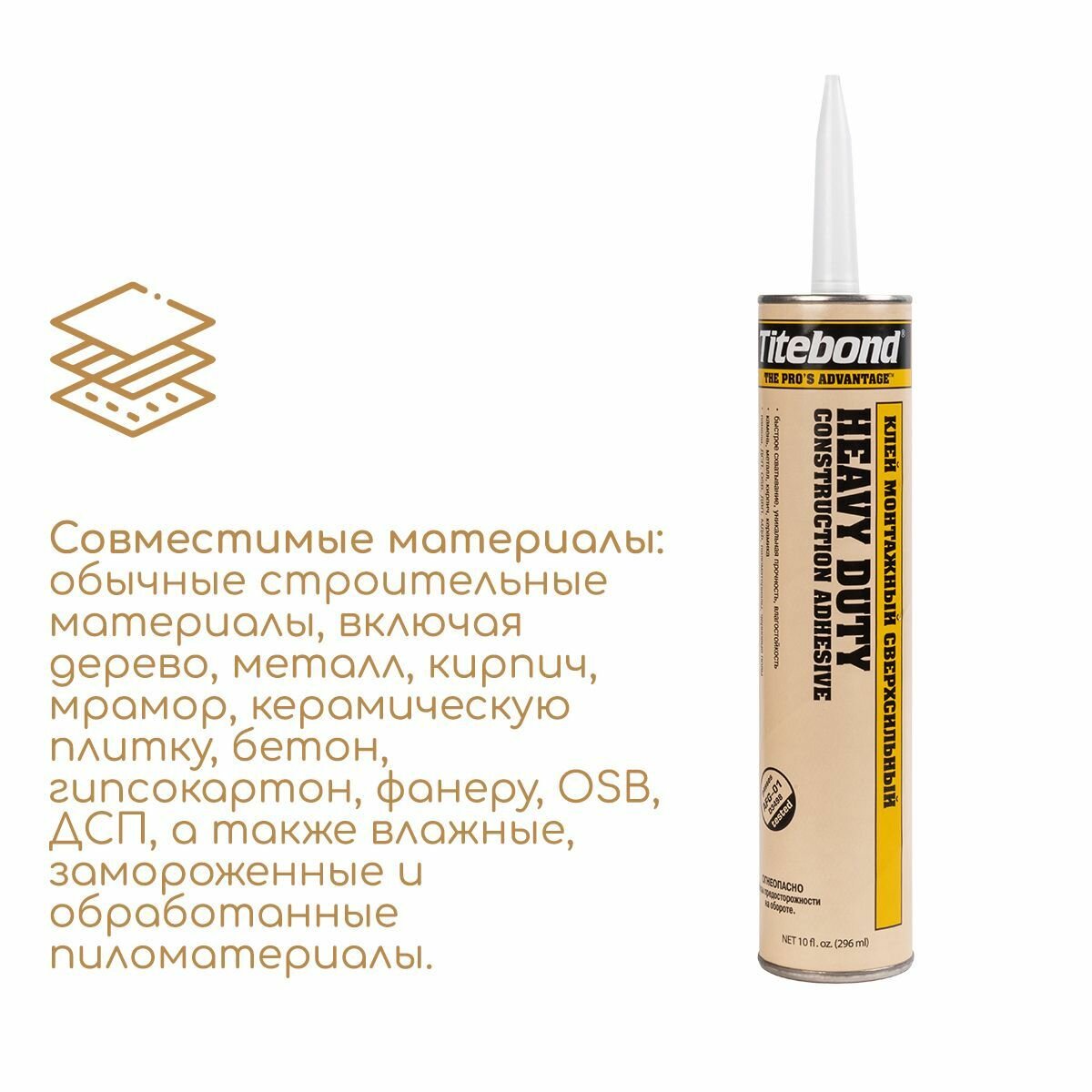 Тайтбонд Heavy Duty клей сверхсильный (0,296л) / TITEBOND Heavy Duty сверхсильный жидкие гвозди (0,296л) желтый картридж