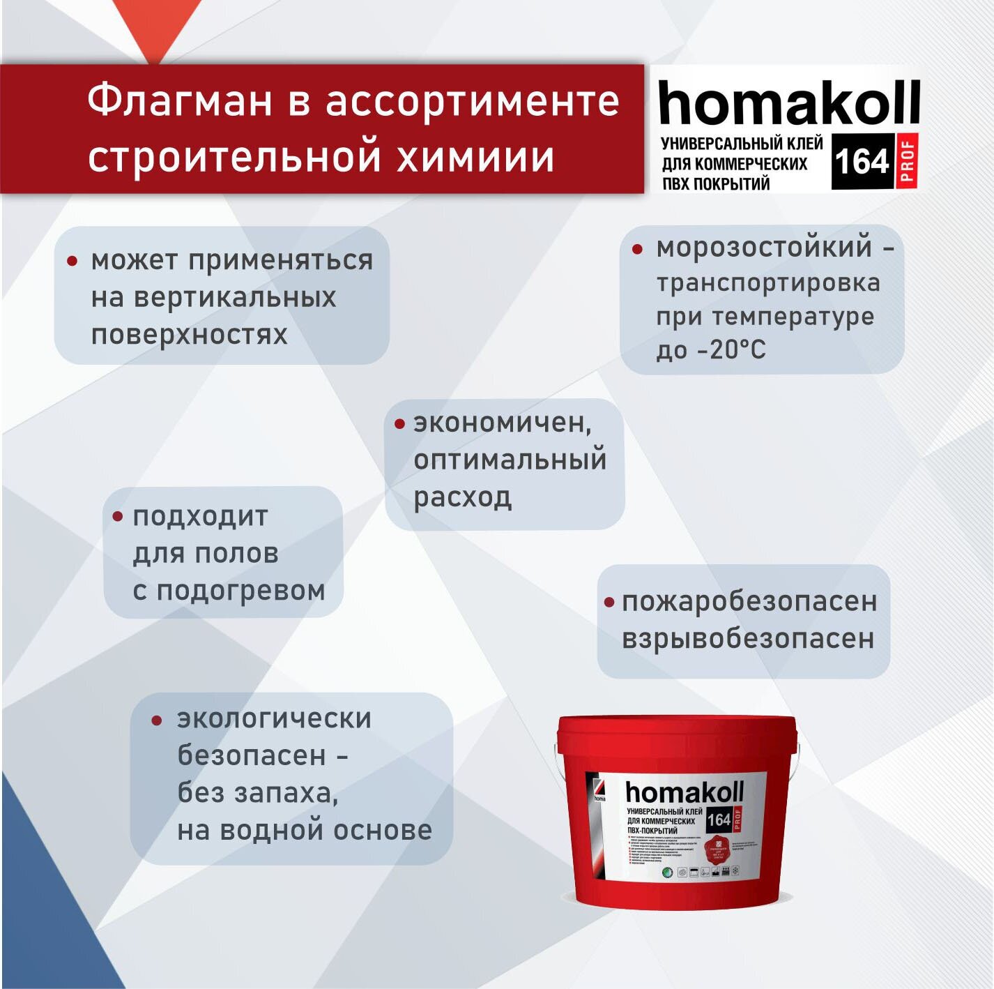 Клей для коммерческих ПВХ-покрытий универсальный homakoll 164 Prof 10 кг