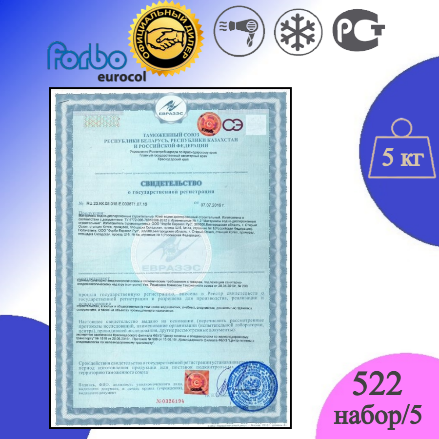 Купить Профессиональный набор для укладки линолеума, ковролина и напольных покрытий с клеем forbo 522, 5кг+шпатель А2 в ПОДАРОК