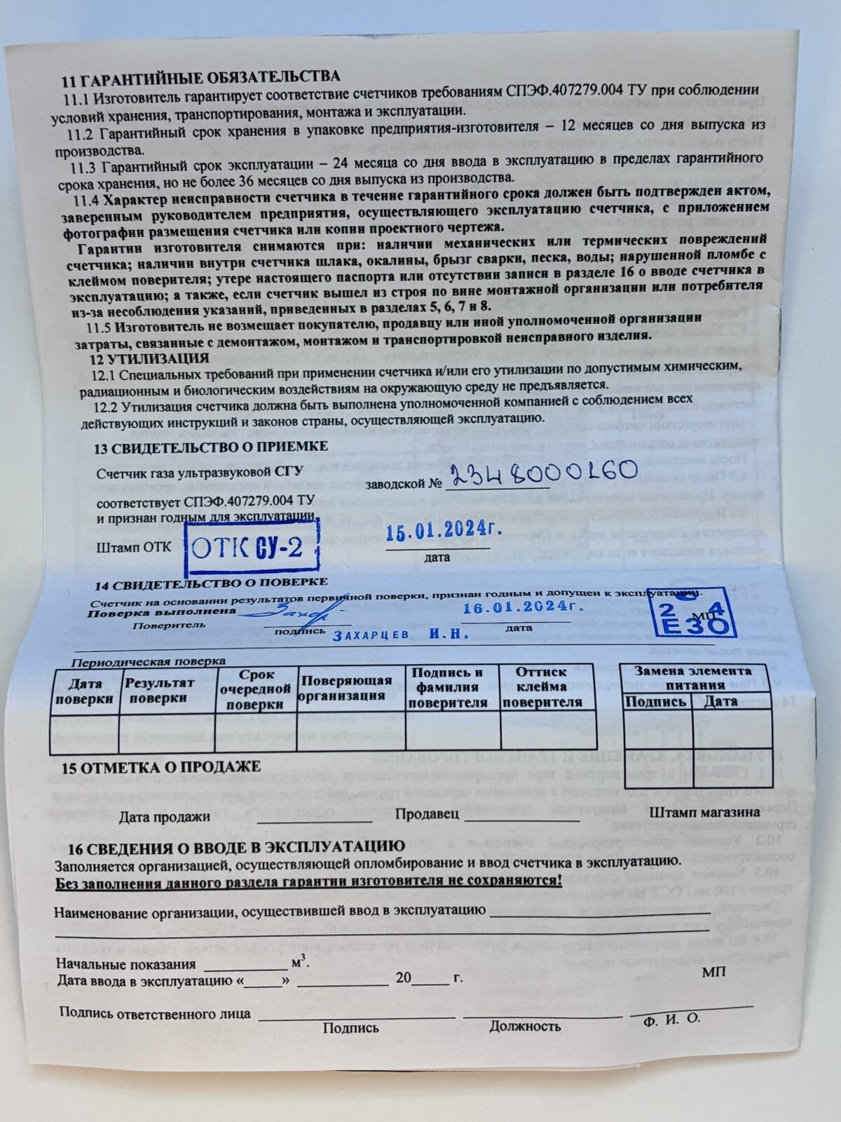| Межповерочный интервал | 10 лет |