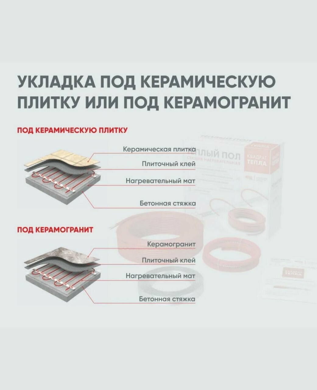 СТН Квадрат тепла КС теплый пол кабельный 46м, 850Вт (5,67 кв.м) / СТН Квадрат тепла КС теплый пол кабельный 46м, 850Вт (4,25-5,67 кв.м)