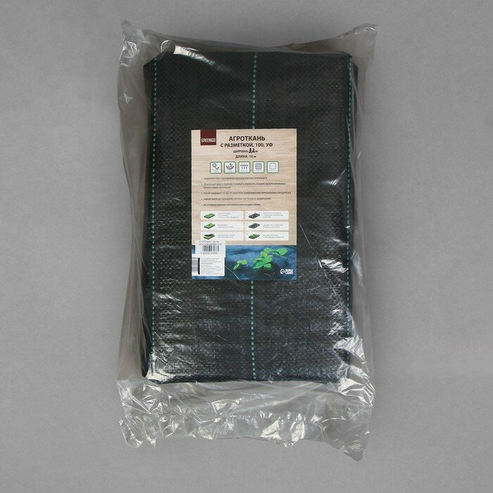 Агроткань застилочная с разметкой, 3,2* 10м, полипропилен УФ 100г/м2. черный, Greengo 9393086