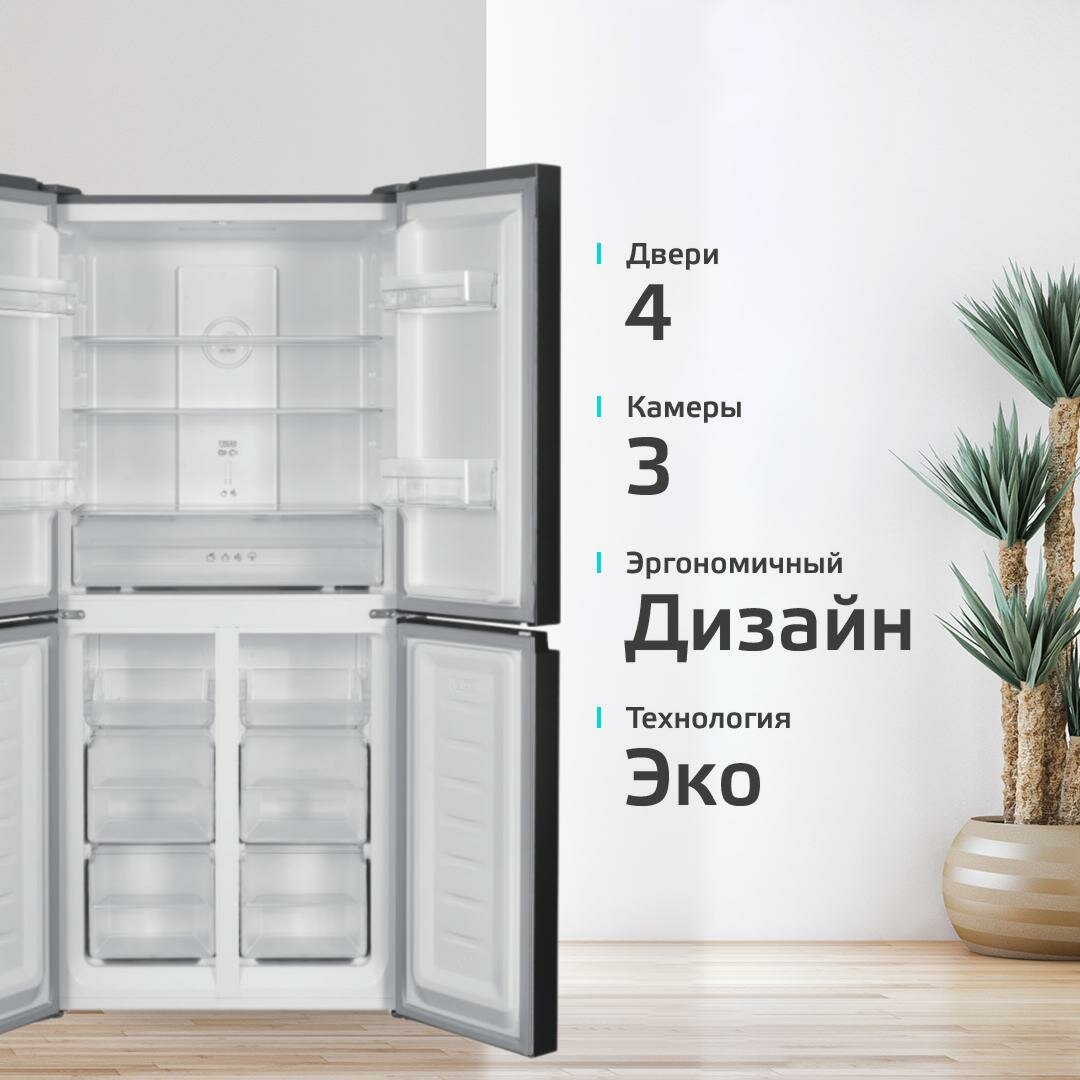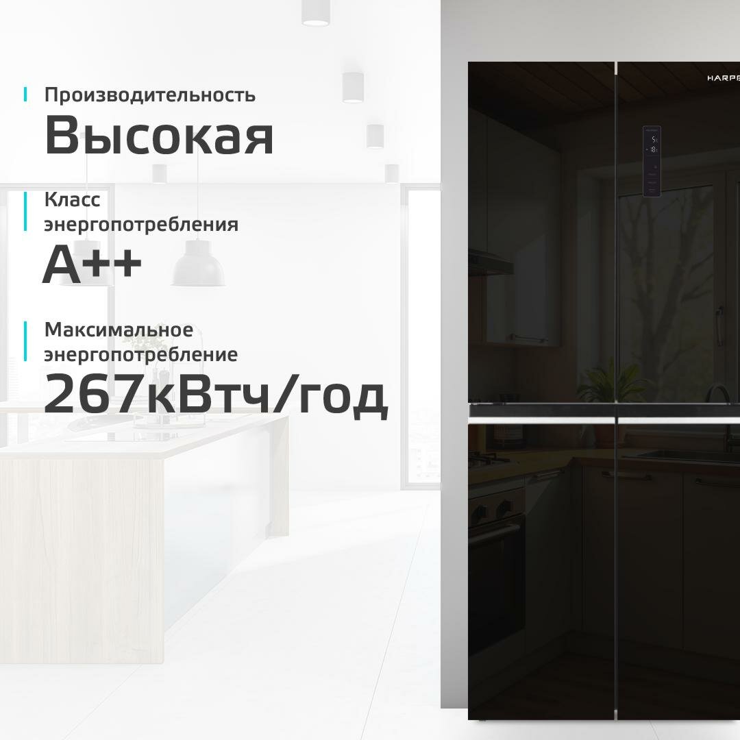 Холодильник трехкамерный 404 л / Total No Frost / А ++ / инверторный, Harper RH6966BI, black glass