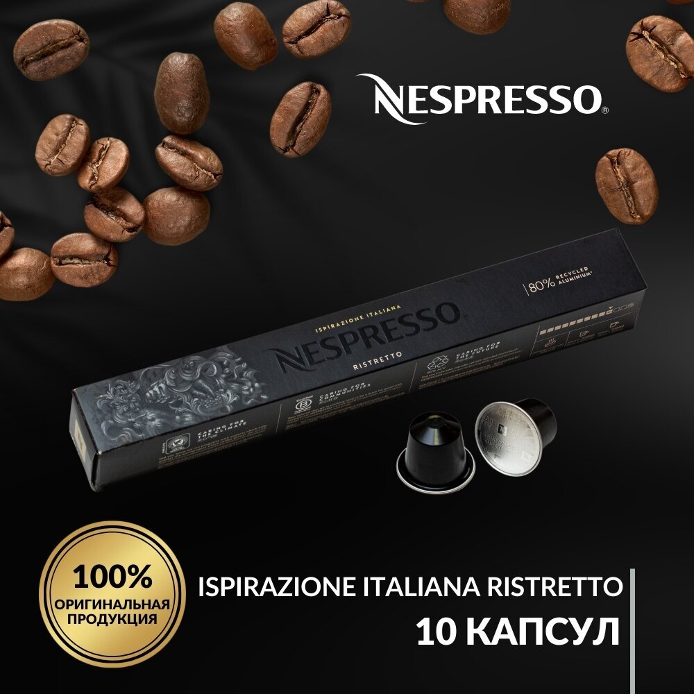 Оригинальные капсулы кофе Nespresso бленд Ristretto Italiano, эспрессо, 1уп. 10 капсул, для кофемашин системы Original.