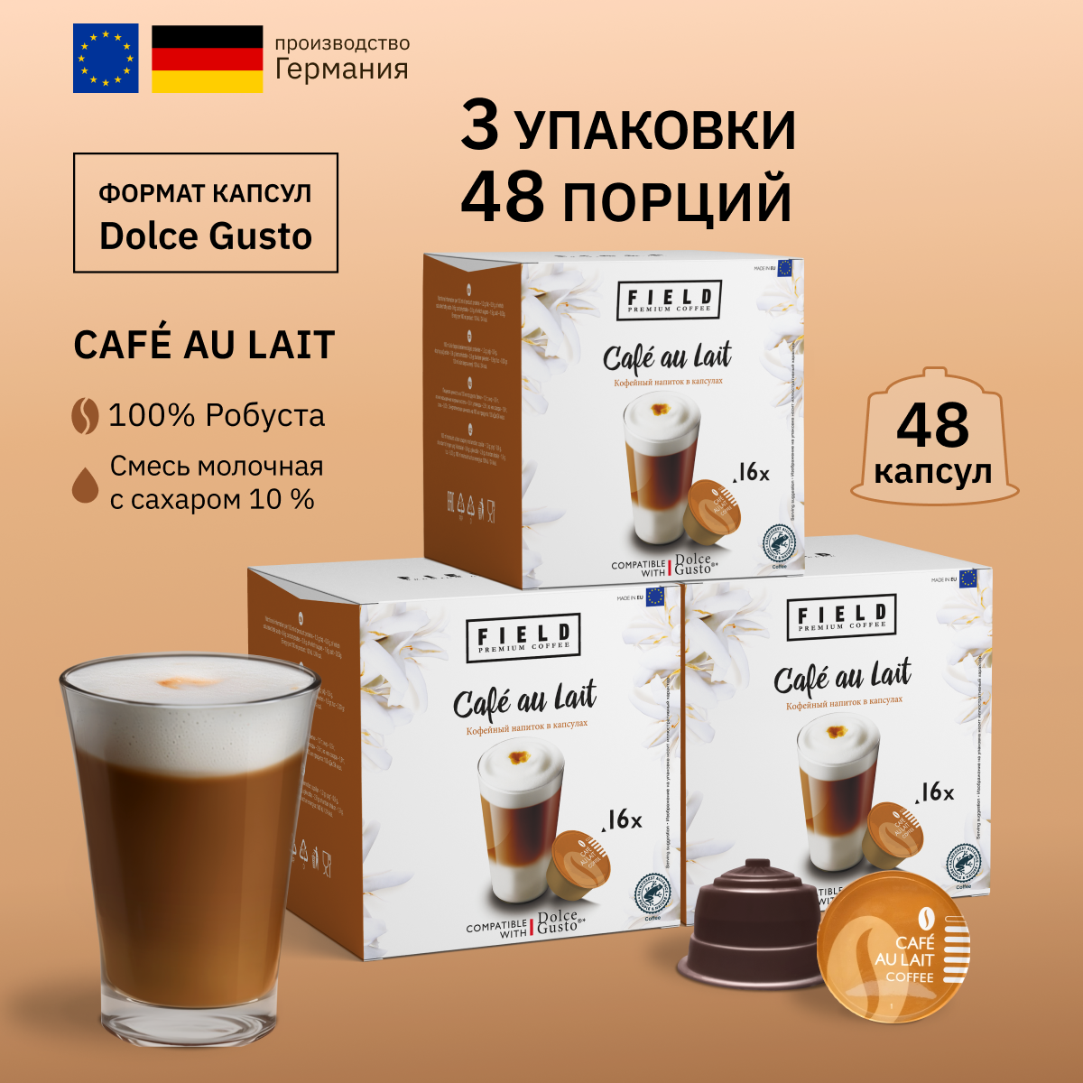 Кофе в капсулах Dolce Gusto Кофе с молоком 48 шт. для кофемашины "FIELD" Набор 3 уп. по 16 шт. Сafe au lait