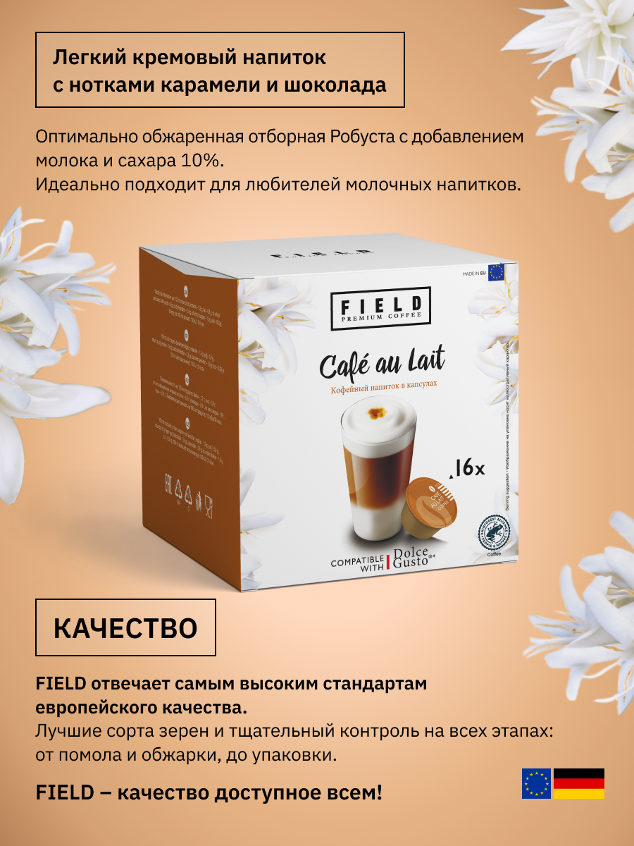 Кофе в капсулах FIELD "Cafe au Lait", для кофемашин Dolce Gusto, 16 порций, германия, C10100104017