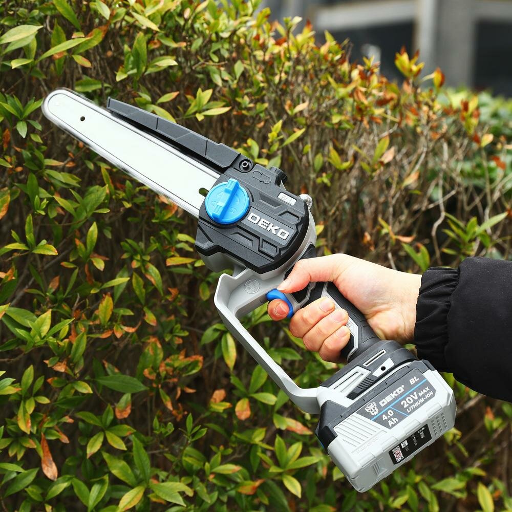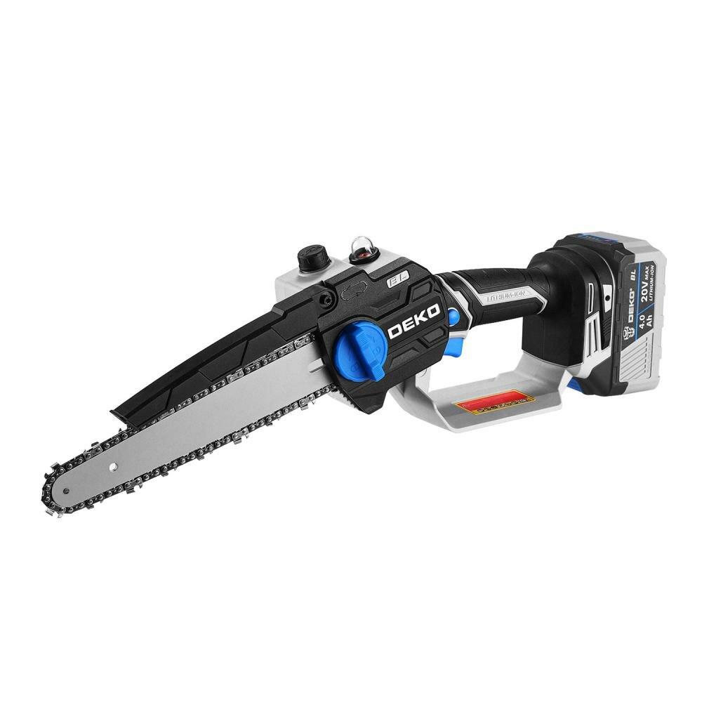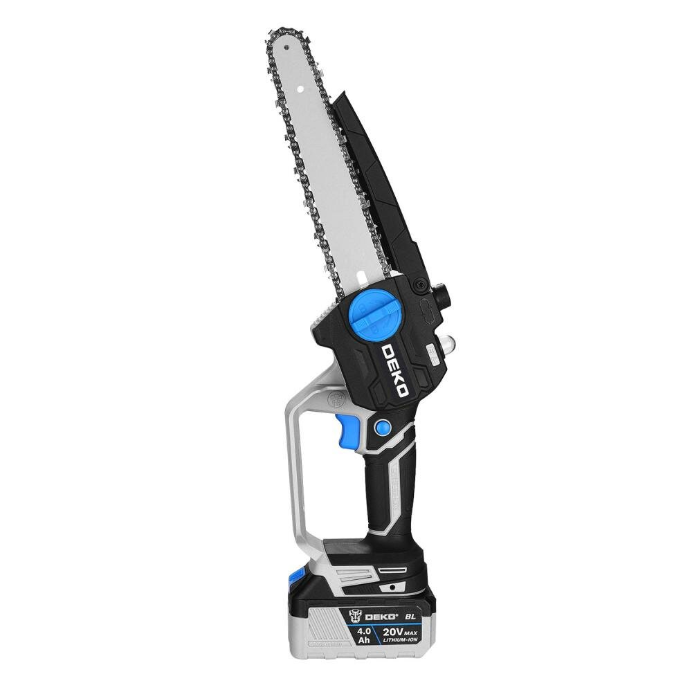 Пила цепная аккумуляторная бесщеточная DEKO DKCHS 20, 12", 20В, 1x4.0Ач, з/у