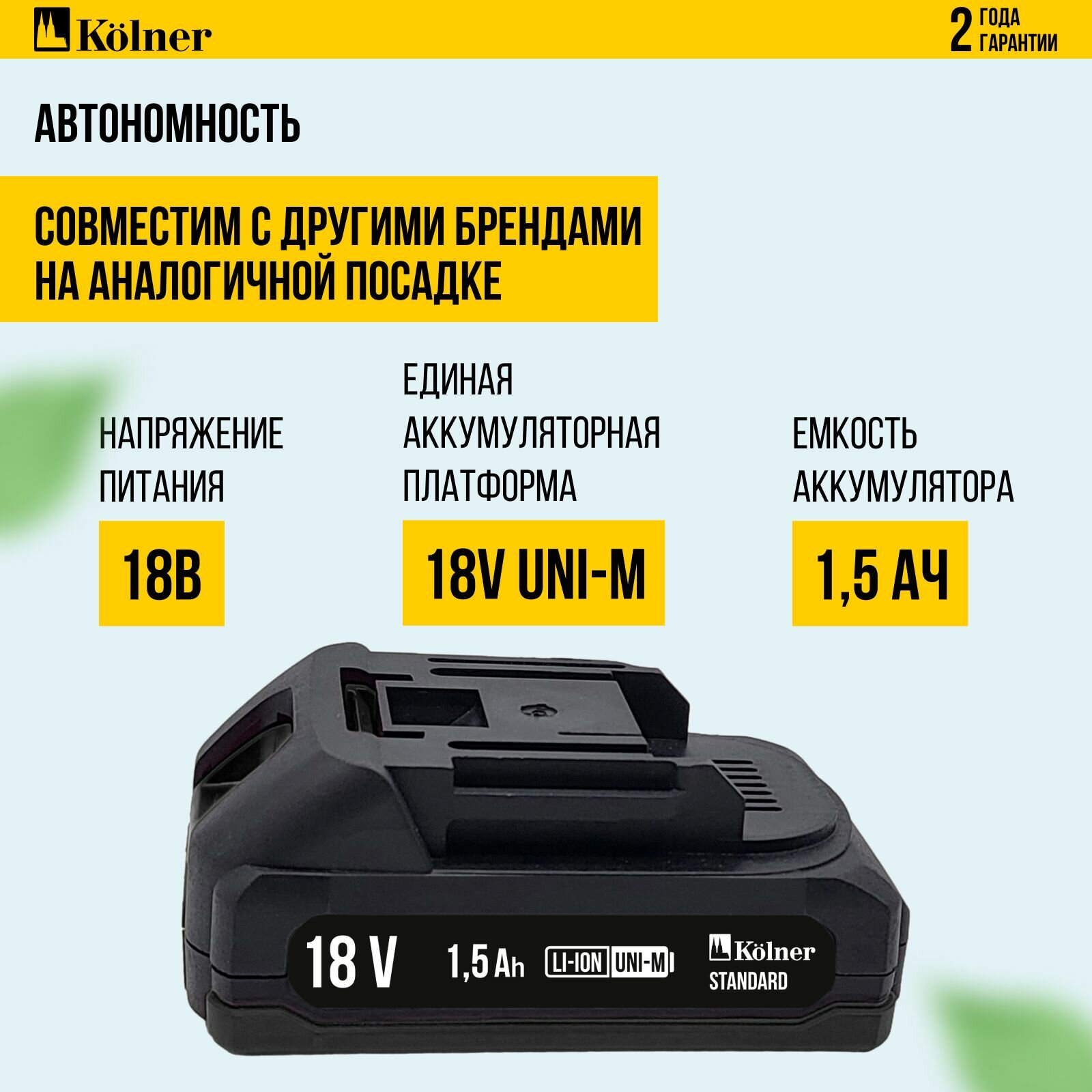 Пила цепная Kolner КCS 18-10-2K, аккумуляторная, 18 В, UNI Standard