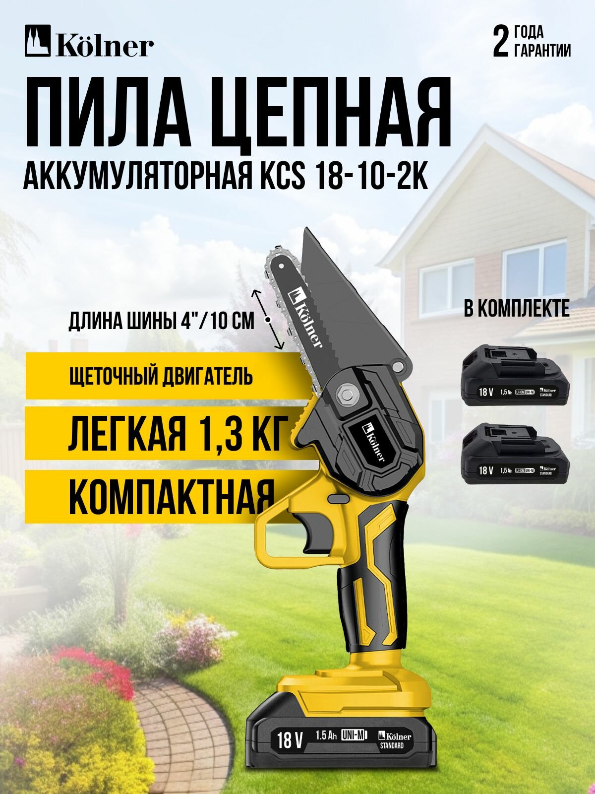 Купить Цепная пила Kolner KCS 18-10-2K UNI Standard, Li-ion аккумулятор, длина шины 10 см, желтая