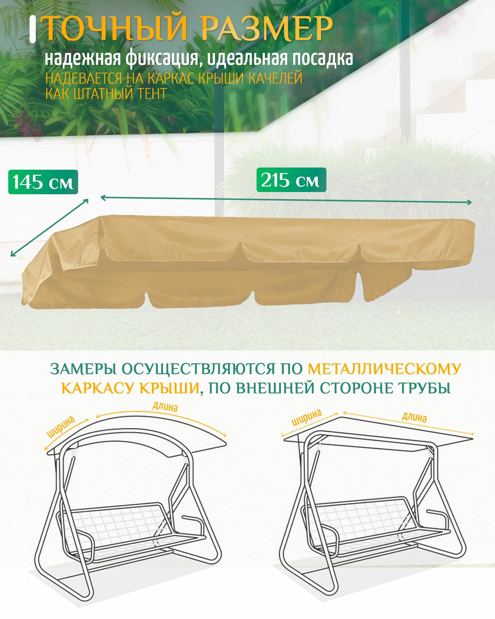 | Дополнительная информация | Тент - крыша для садовых качелей из уплотненной ткани Оксфорд 240D |