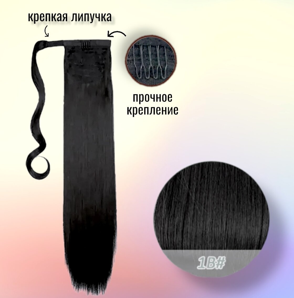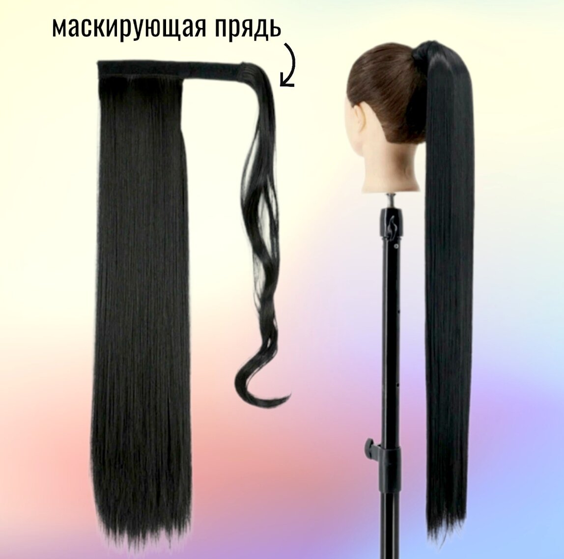 Купить Хвост накладной для волос. 80 см. Глубокий черный