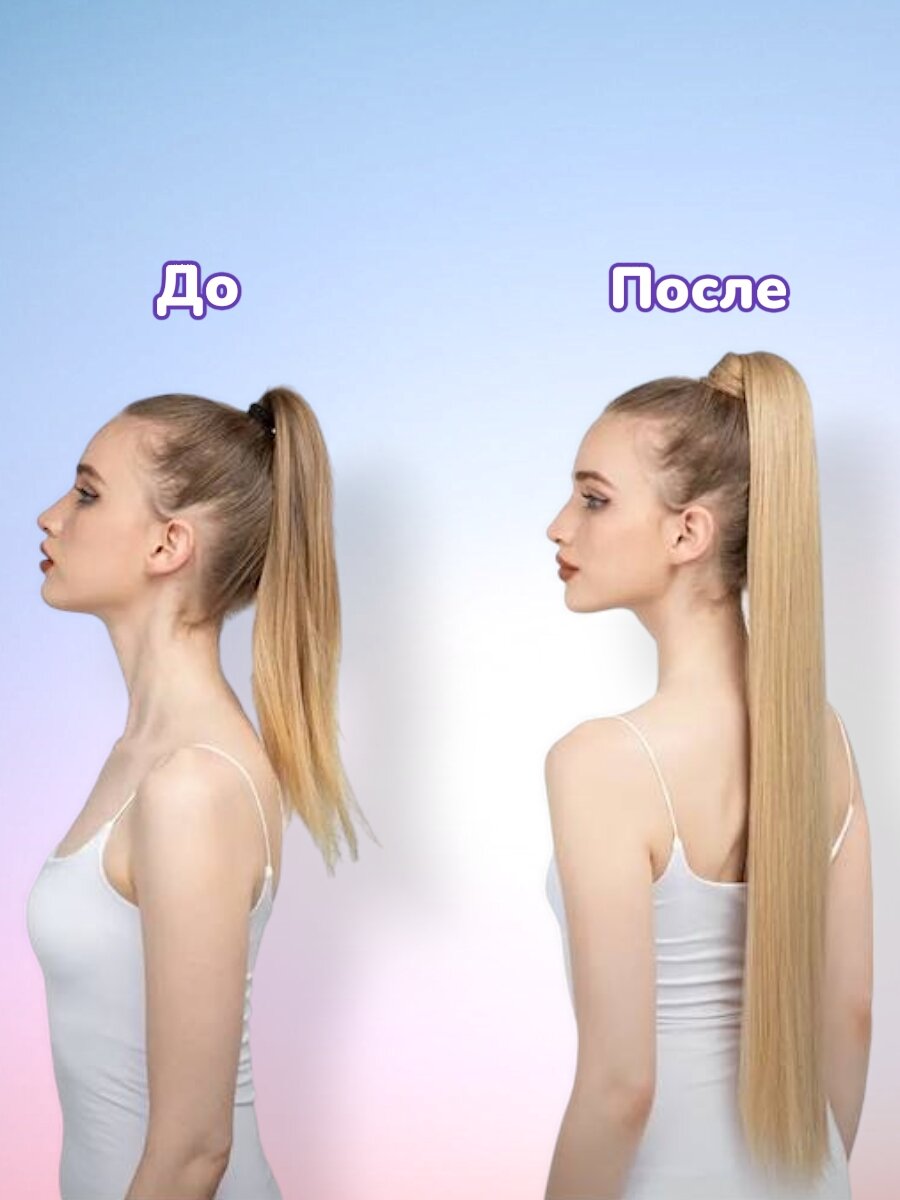 Хвост накладной для волос. 80см. Холодный блондин