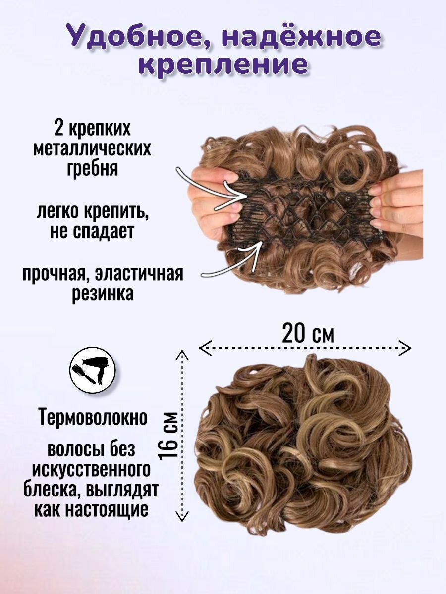 Шиньон накладной для волос на заколках. Блондин мелированный с коричневым
