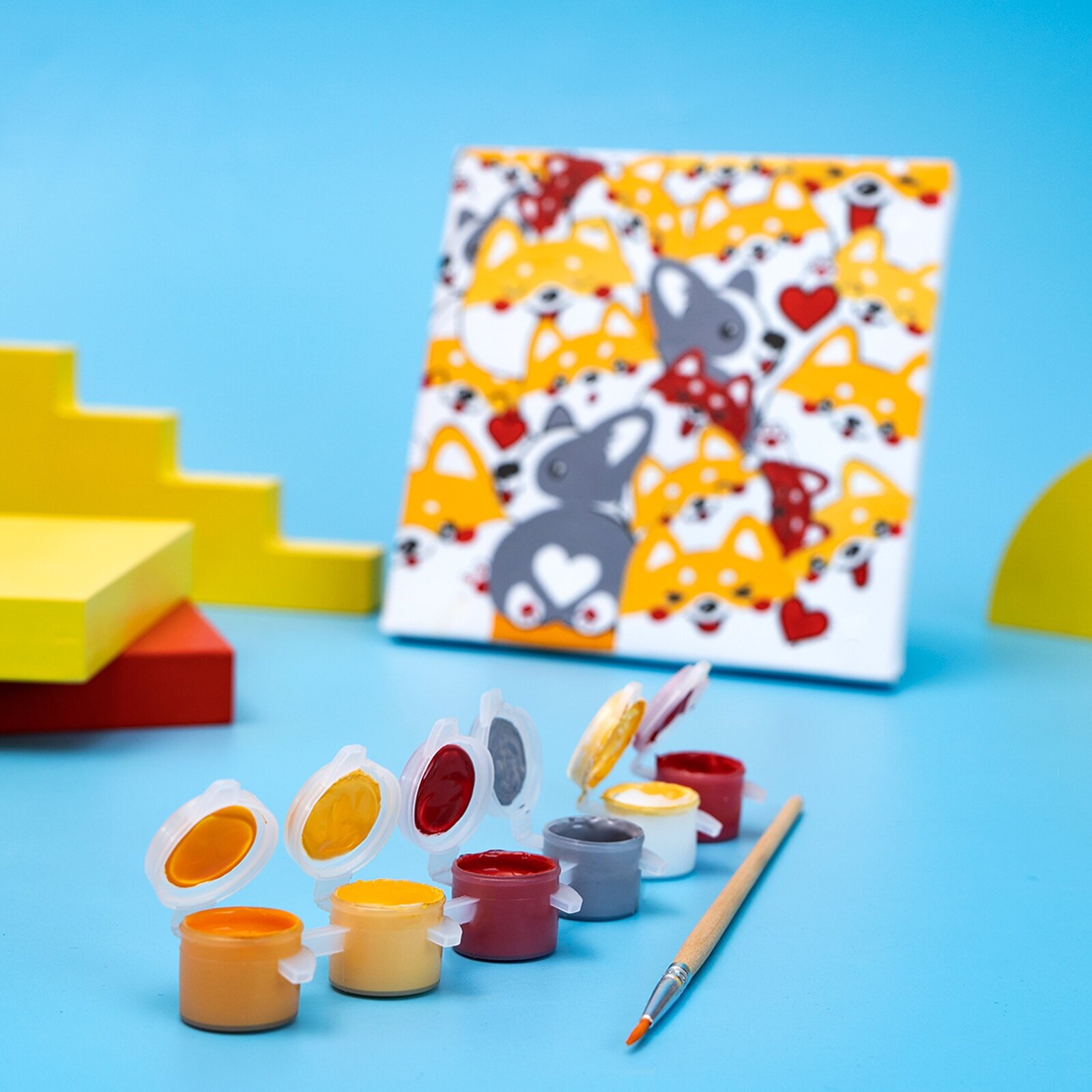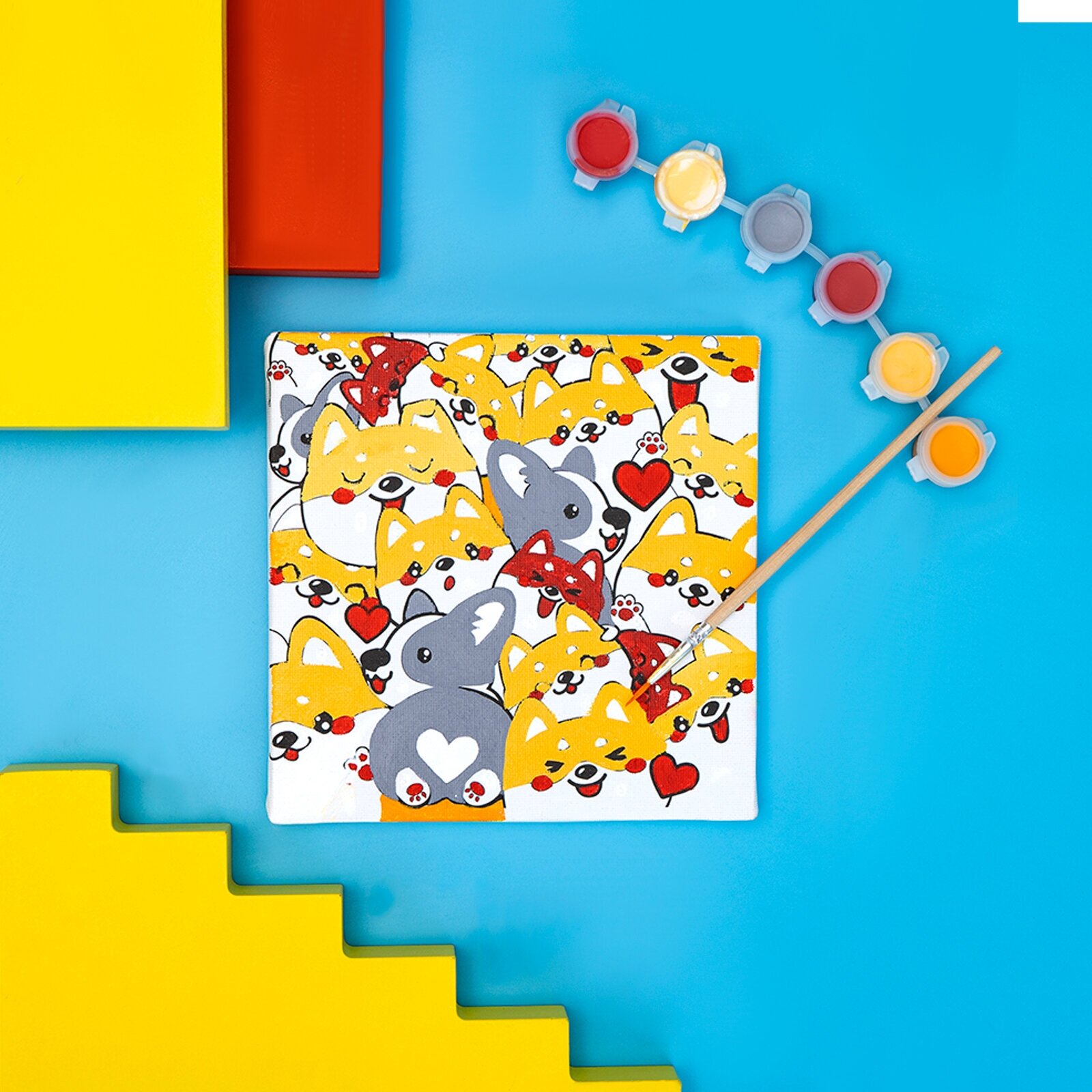 Купить Картина по номерам "Корги", Школа талантов, размер: 15х15 см, холст на подрамнике, для детей и малышей