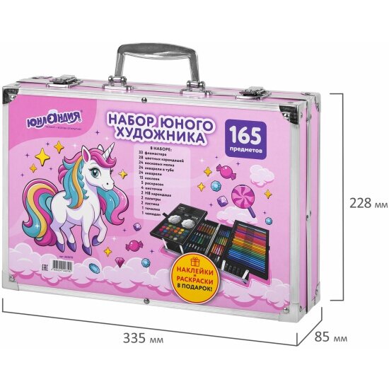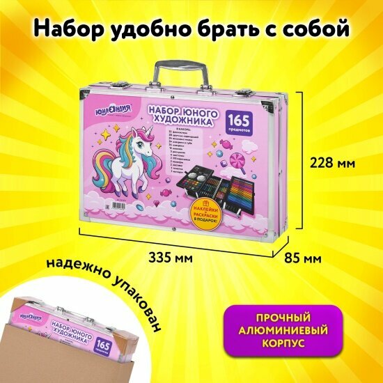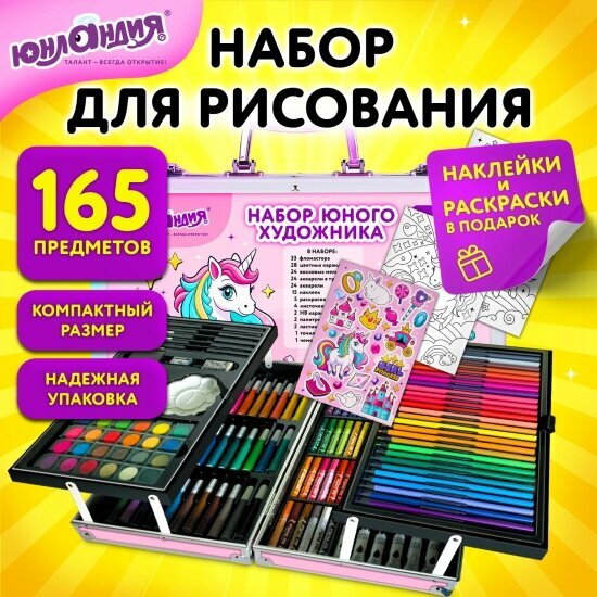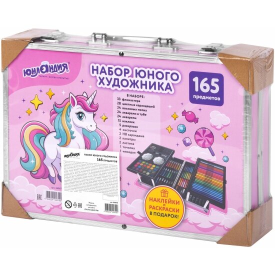 Купить Набор для рисования Юнландия юного художника "единорог" и творчества в кейсе , 165 предметов, 665670
