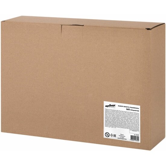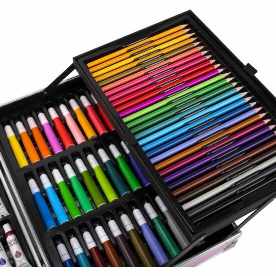 | Состав набора | альбом / карандаши / кисточка / краска / ластик / мольберт / палитра / пастель / точилка / фломастеры |