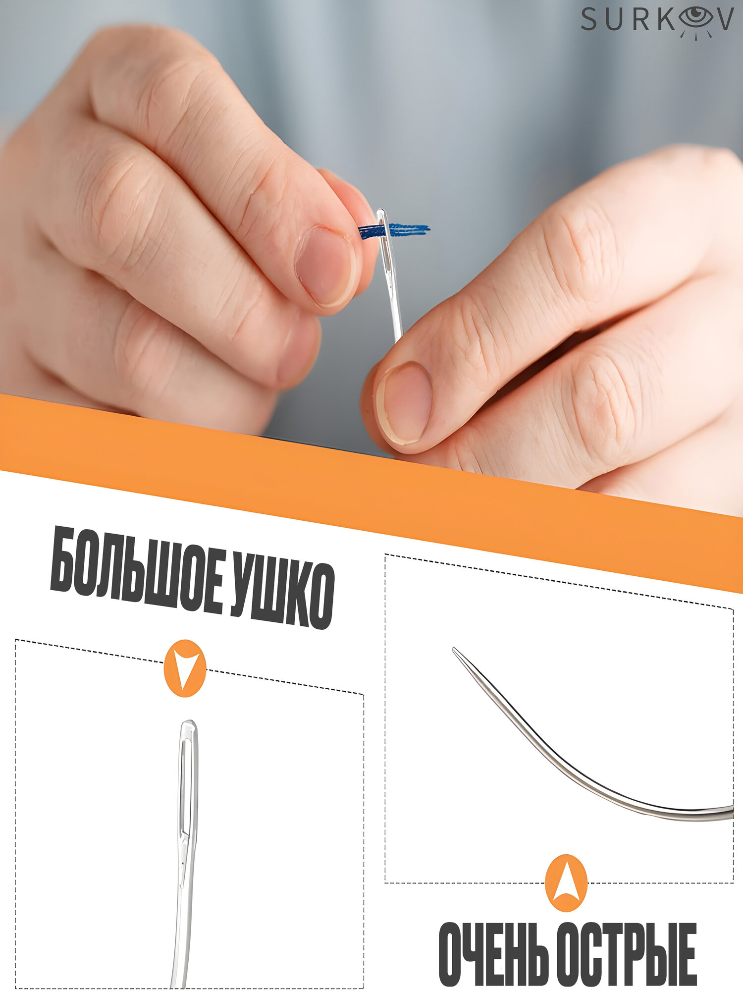 Набор иголок для шитья 50 штук / для слабовидящих с большим и маленьким ушком