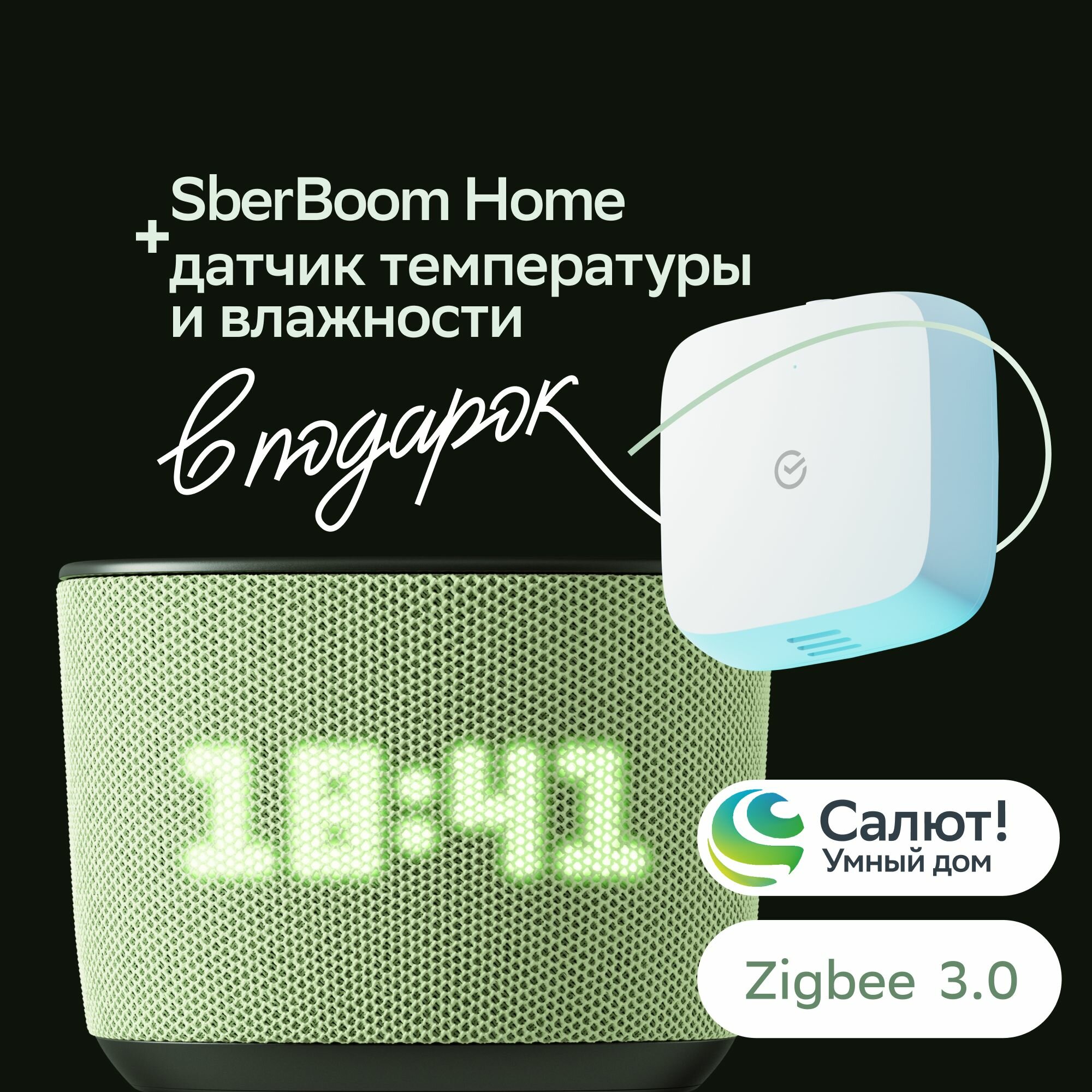 СохранитьУмная колонка SBER Boom Home SBDV-00171VB, 8Вт, с Салют, светло-зеленый + Датчик температуры и влажн интересное: