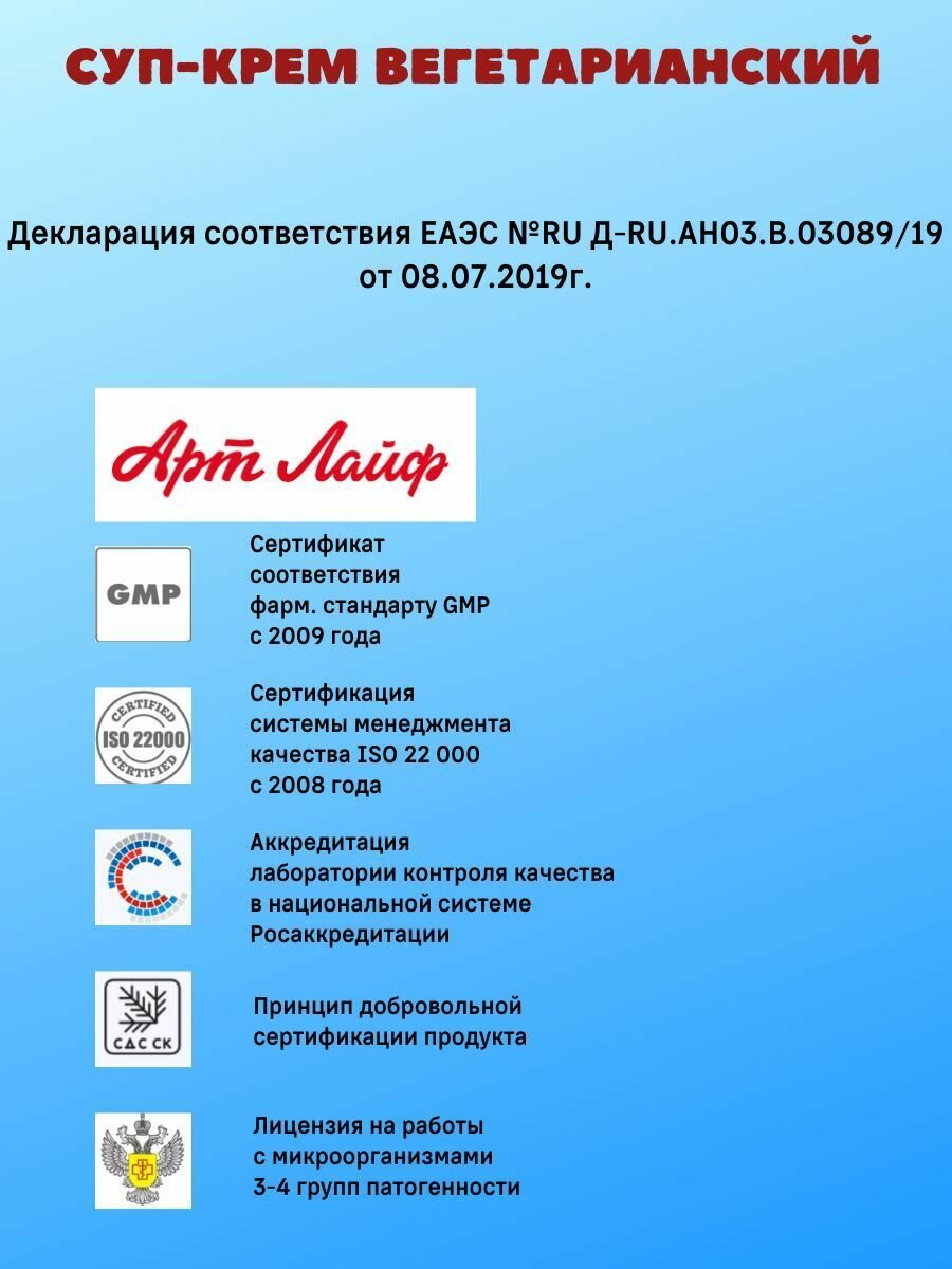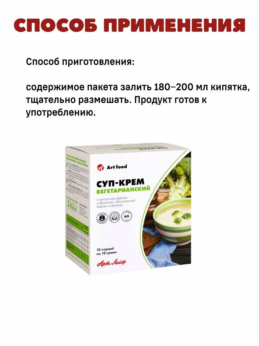 Арт Лайф, Суп-крем вегетарианский, с мускатным орехом и брокколи, 10 порций. Артлайф Art Life