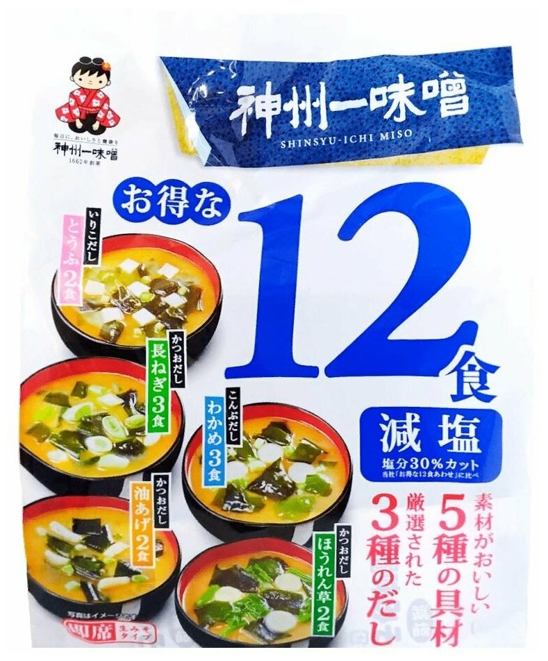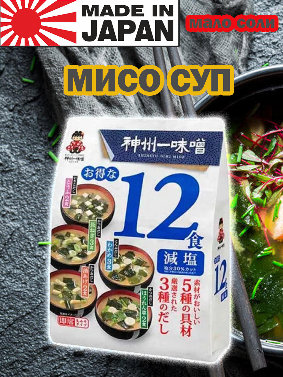 Мисо суп ассорти быстрого приготовления с пониженным содержанием соли Miyasaki, 12 порций, Япония интересное: