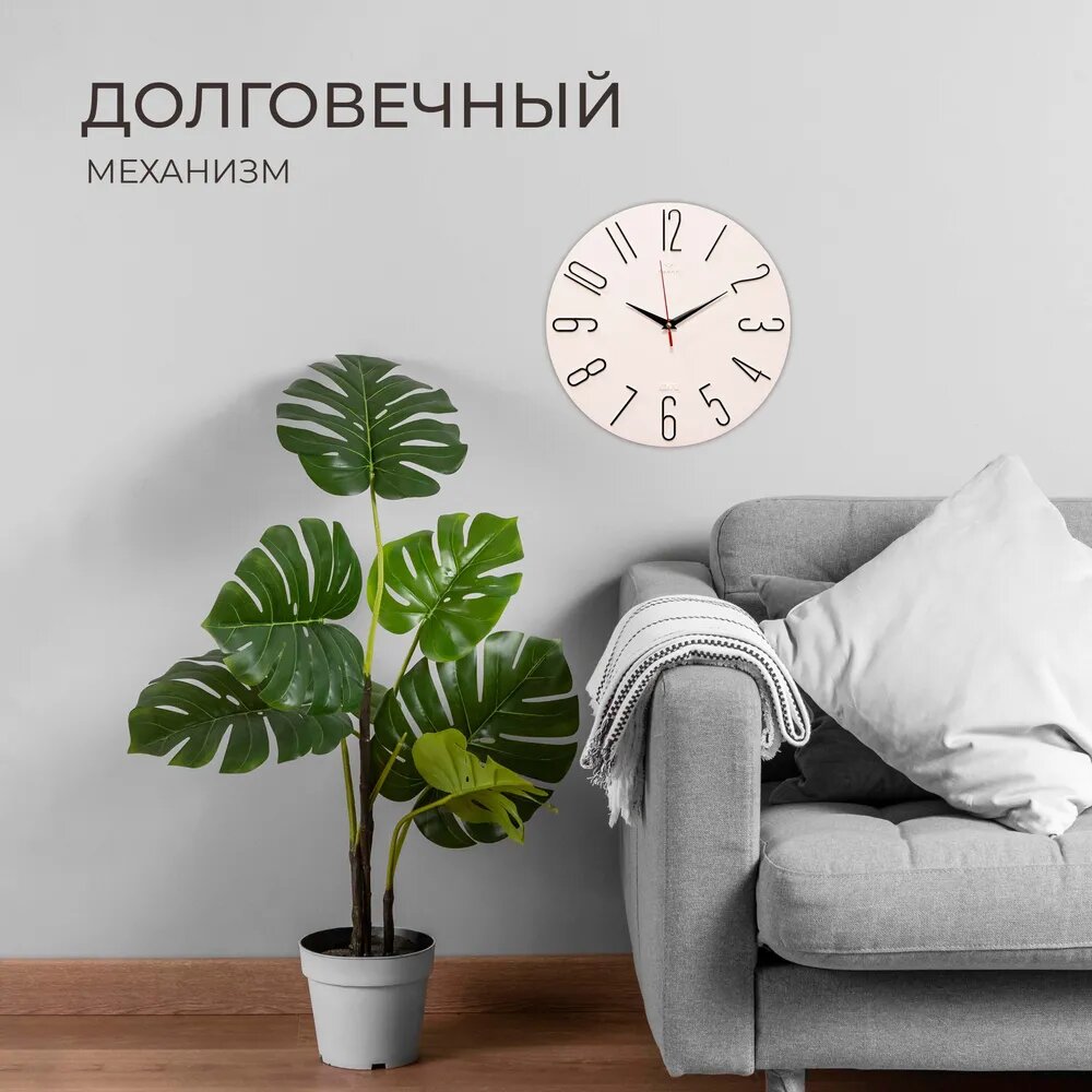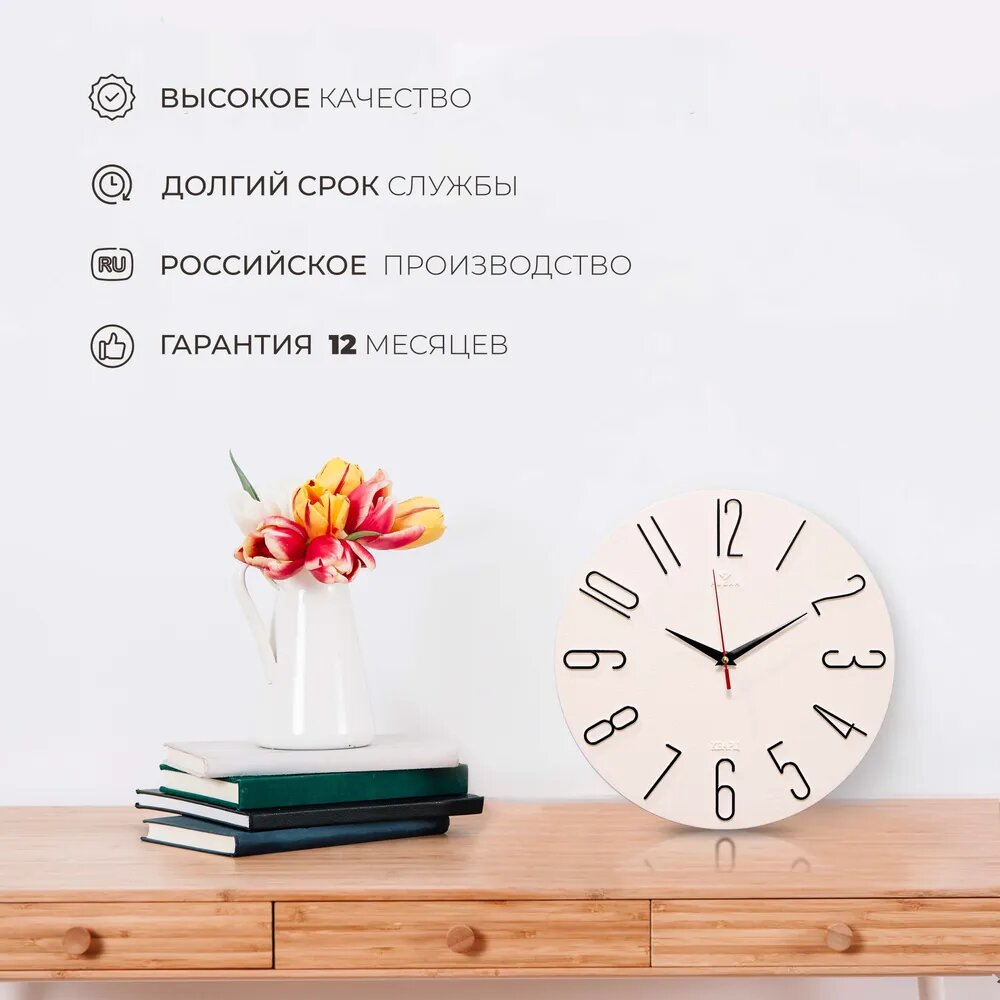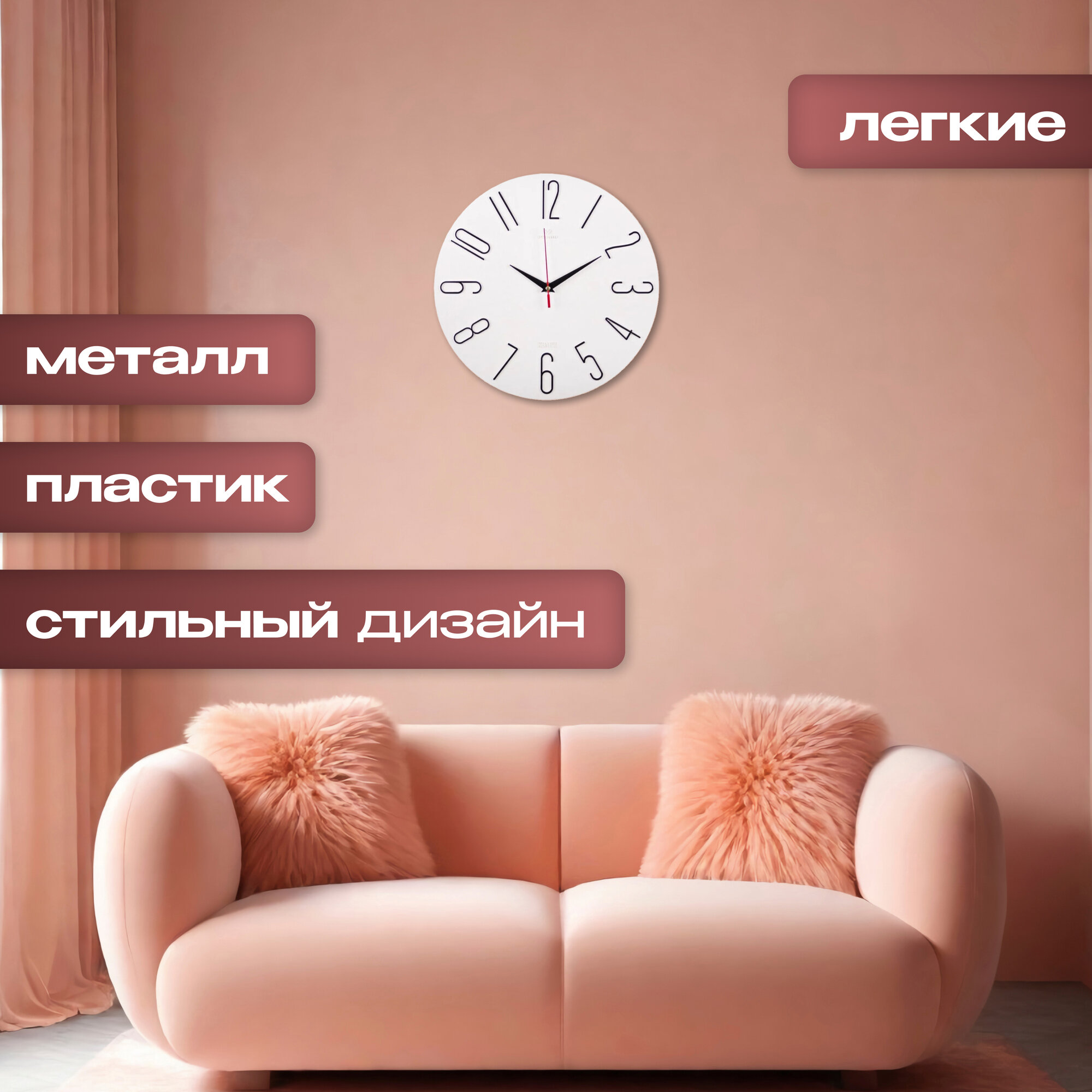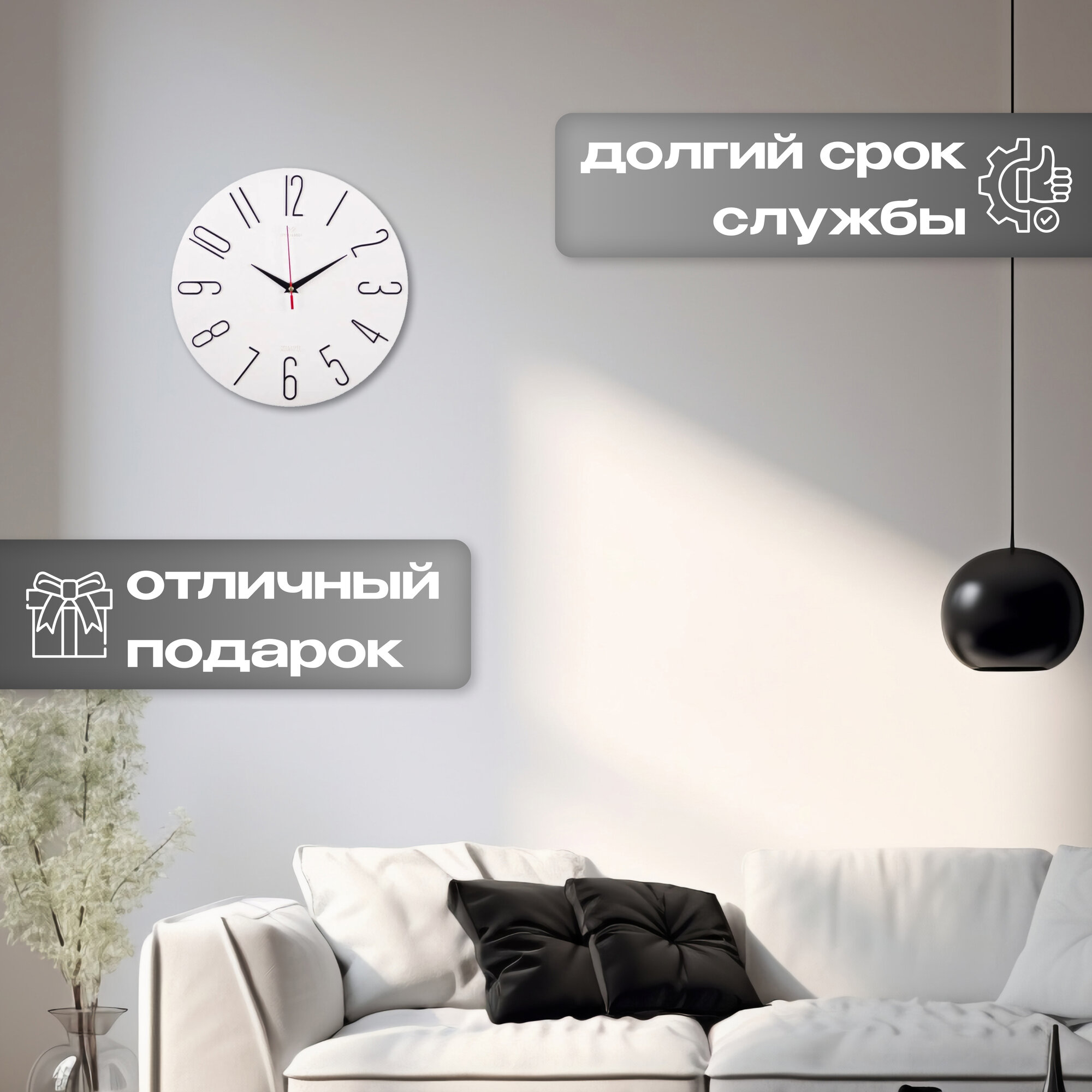 Рубин Часы настенные, интерьерные, бесшумные, d-30 см, белые