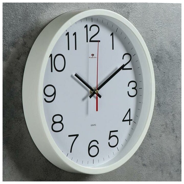 Настенные круглые кварцевые часы Рубин Классика, бесшумный механизм, арабские цифры, белый корпус, d-19,5 см, для дачи, офиса, дома