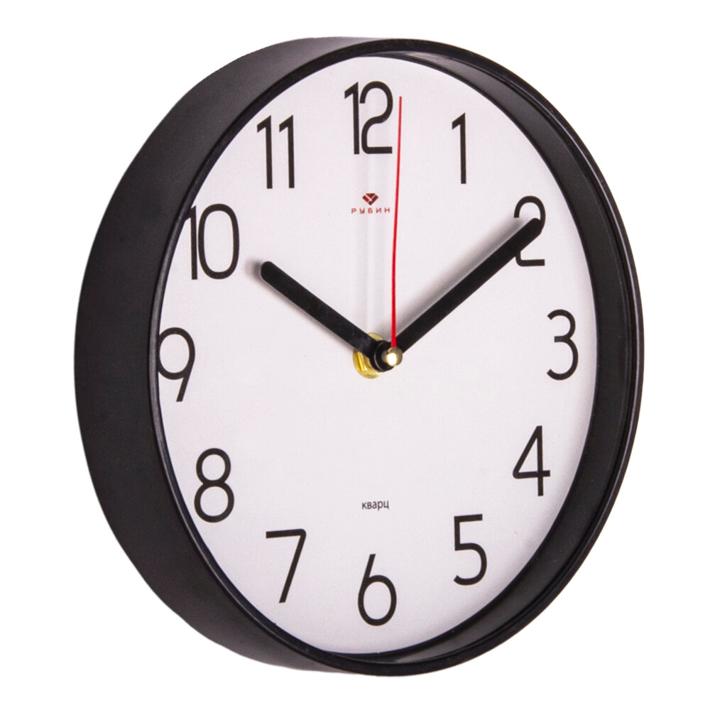СохранитьЧасы настенные Рубин круглые d 19,5 см, корпус черный Классика 2019-111В , плавный ход, арабские цифры интересное: