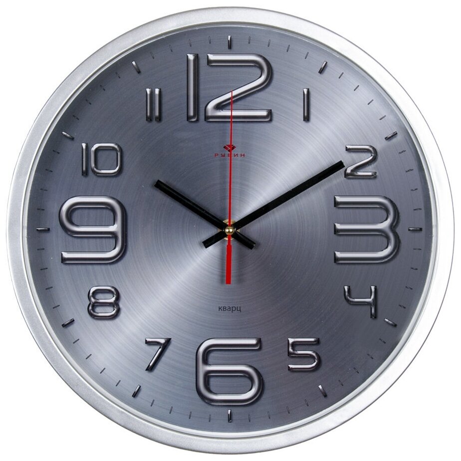Часы настенные бесшумные Рубин круглые, D 30 см, корпус серебряный, "хром"