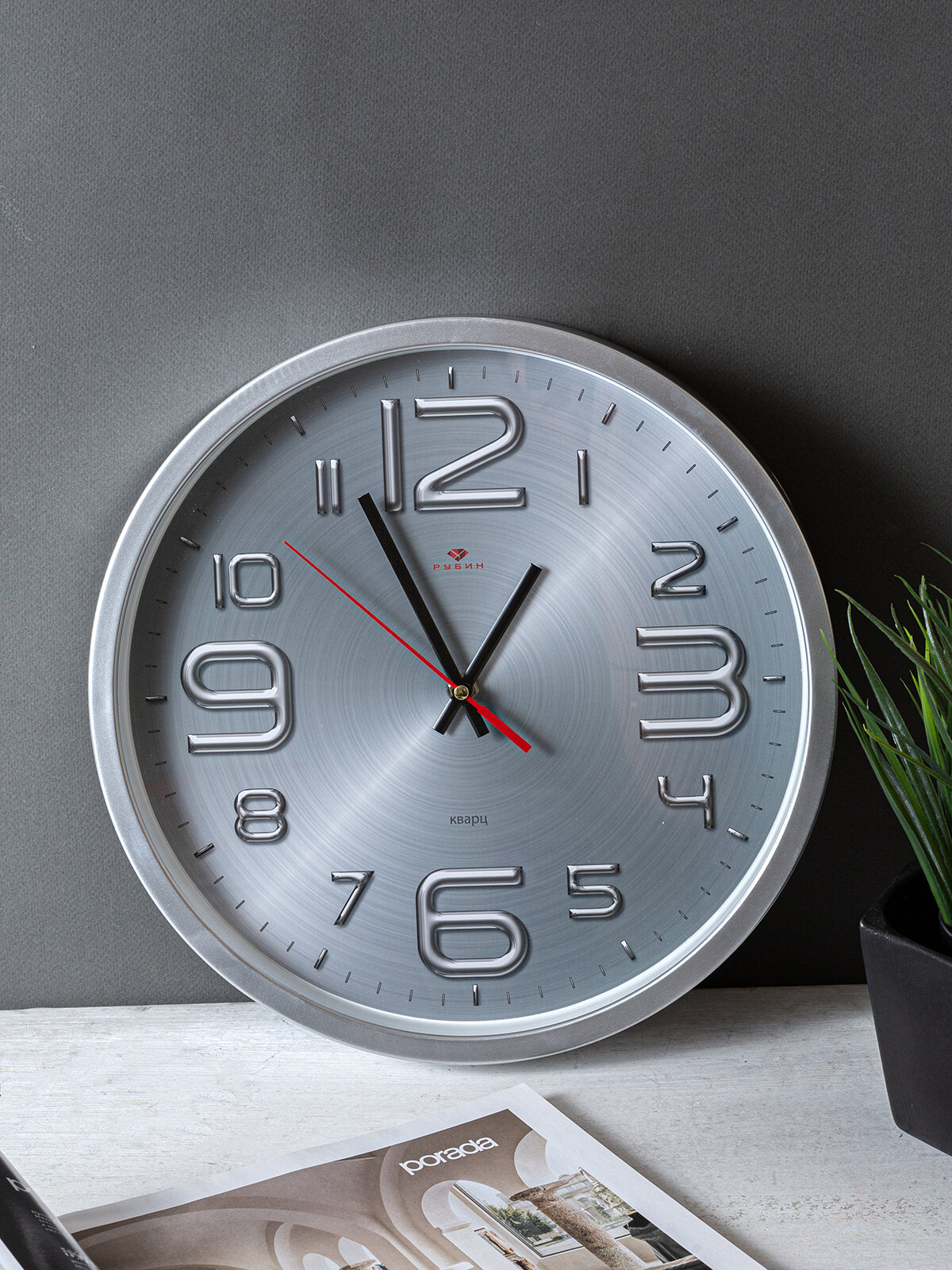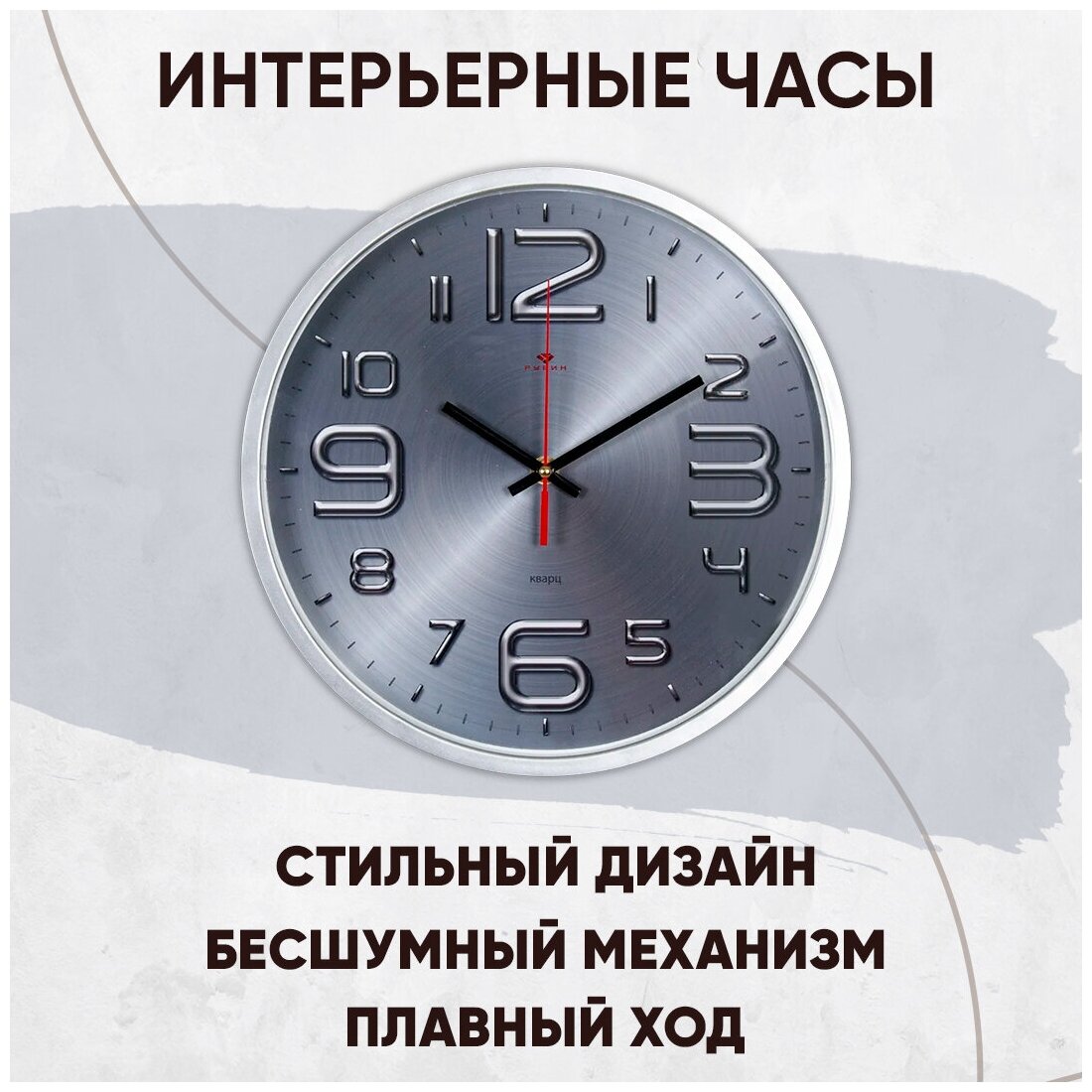 Часы большие настенные кварцевые круглые в классическом стиле Рубин Хром 30 см с большими арабским цифрами